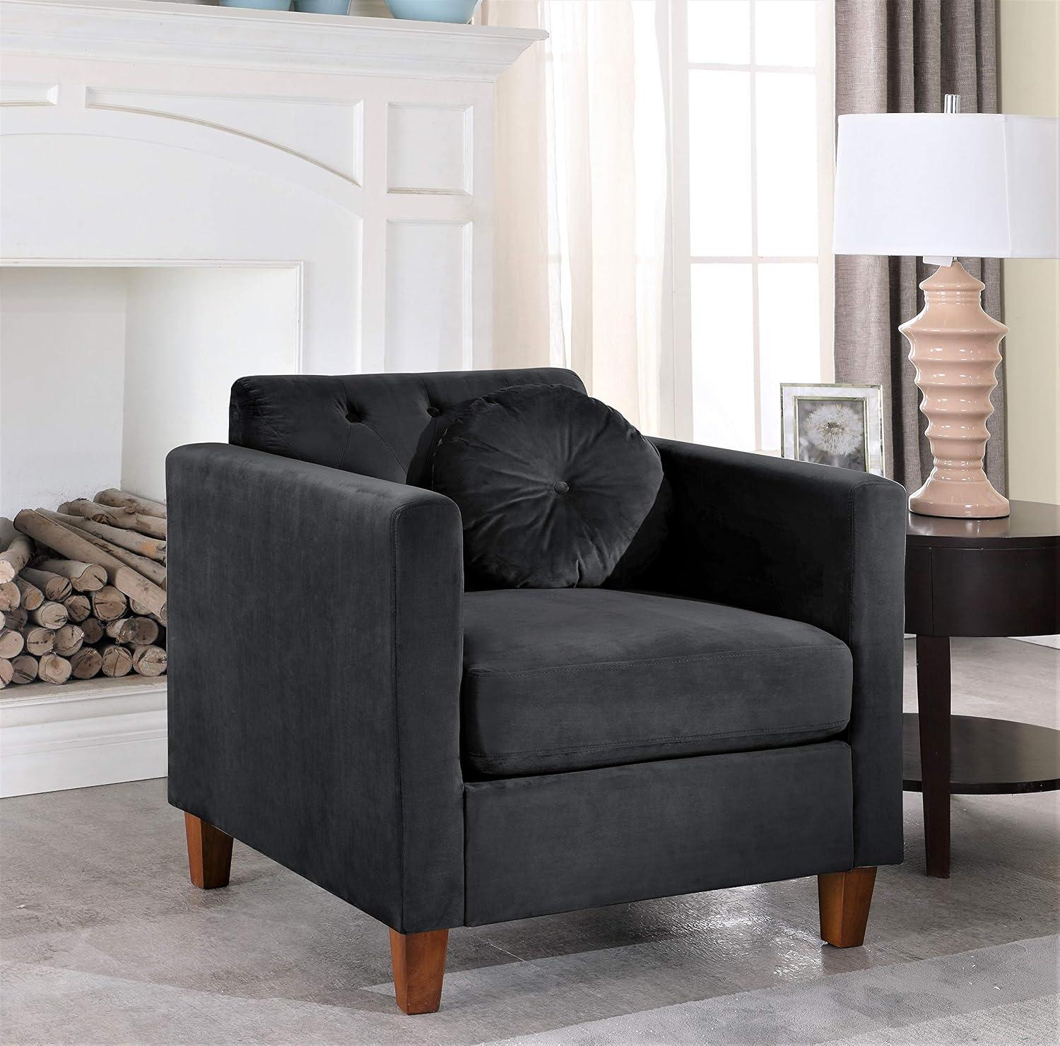 | Sumptuous crushed velvet upholstery adds a luxurious, soft touch to any room. | Midnight black color, while elegant, may show dust and pet hair more visibly. |