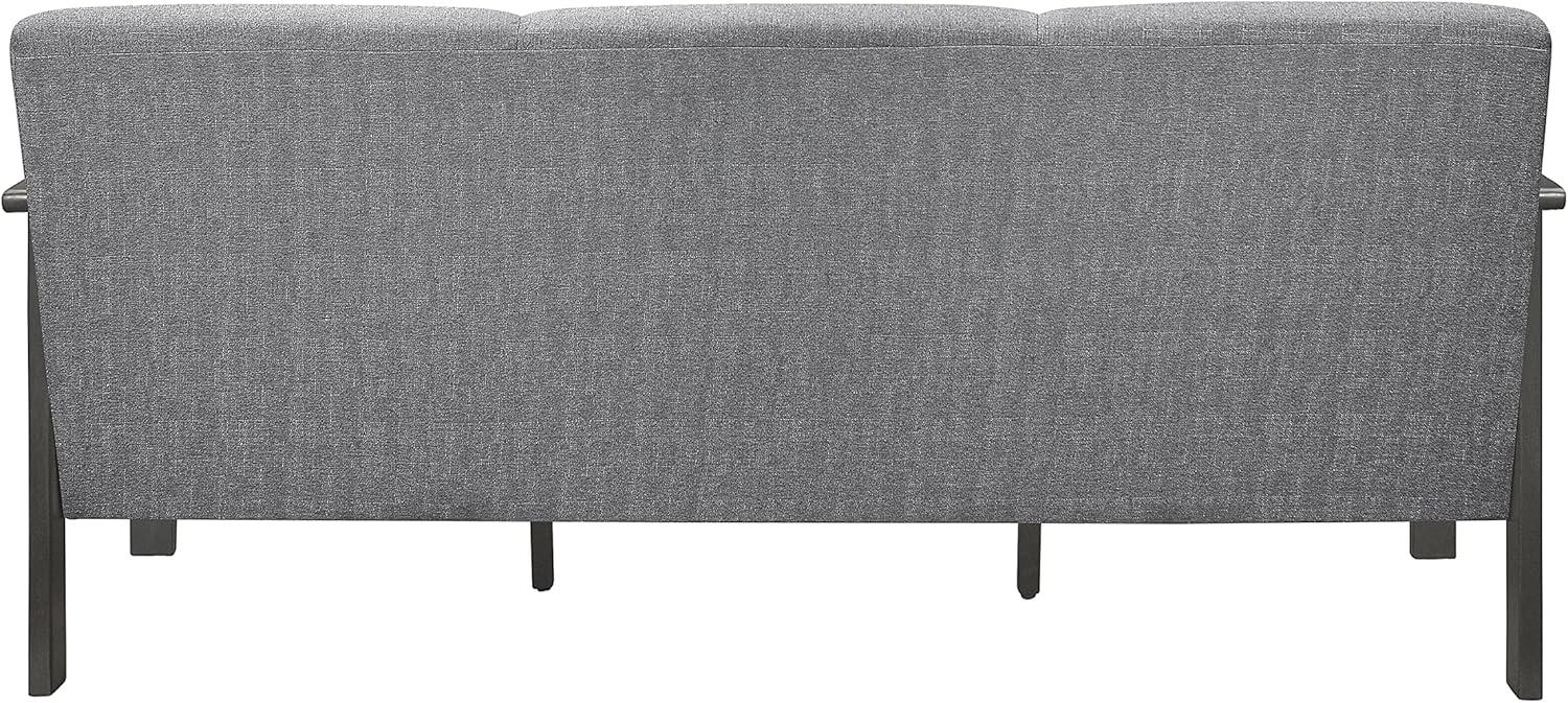 The blend of traditional Arts and Crafts styling with a modern mission look creates a striking balance of timeless elegance and contemporary charm. The antique gray finish on the wood frame beautifully contrasts with the gray linen-like upholstery,offering a neutral yet warm visual accent that suits a variety of décor styles. This sofa set’s understated profile allows it to seamlessly integrate into our living space,enhancing it without overpowering the existing design elements. The straight lines paired with subtle curves give it a transitional appeal that feels both inviting and refined.
