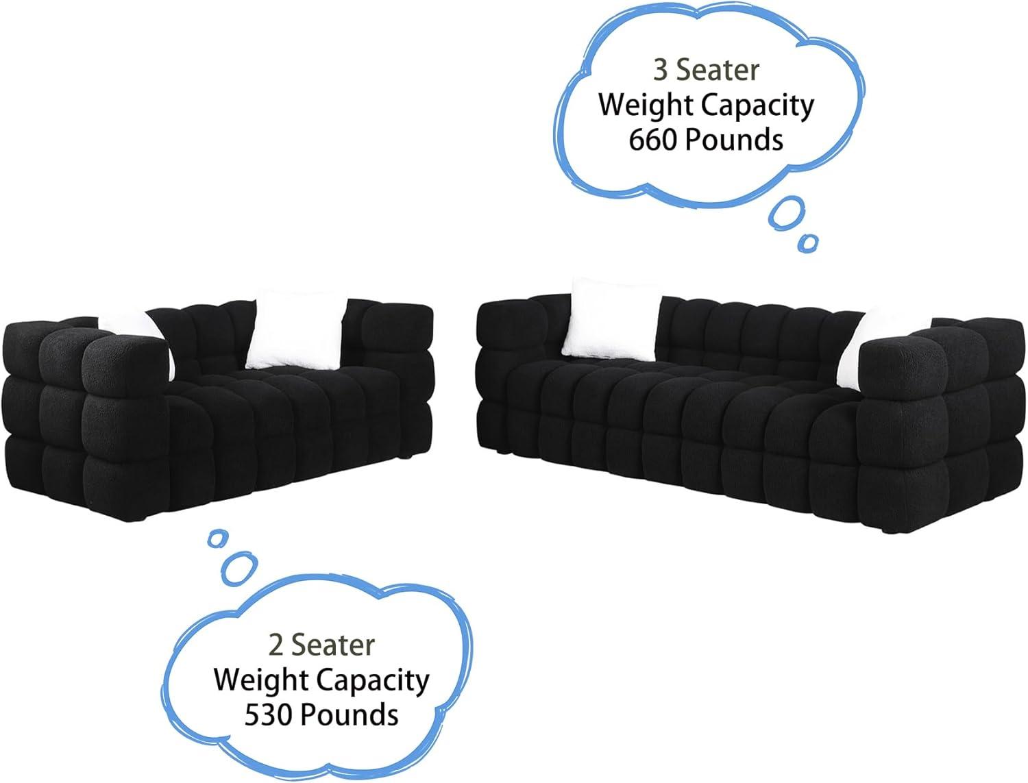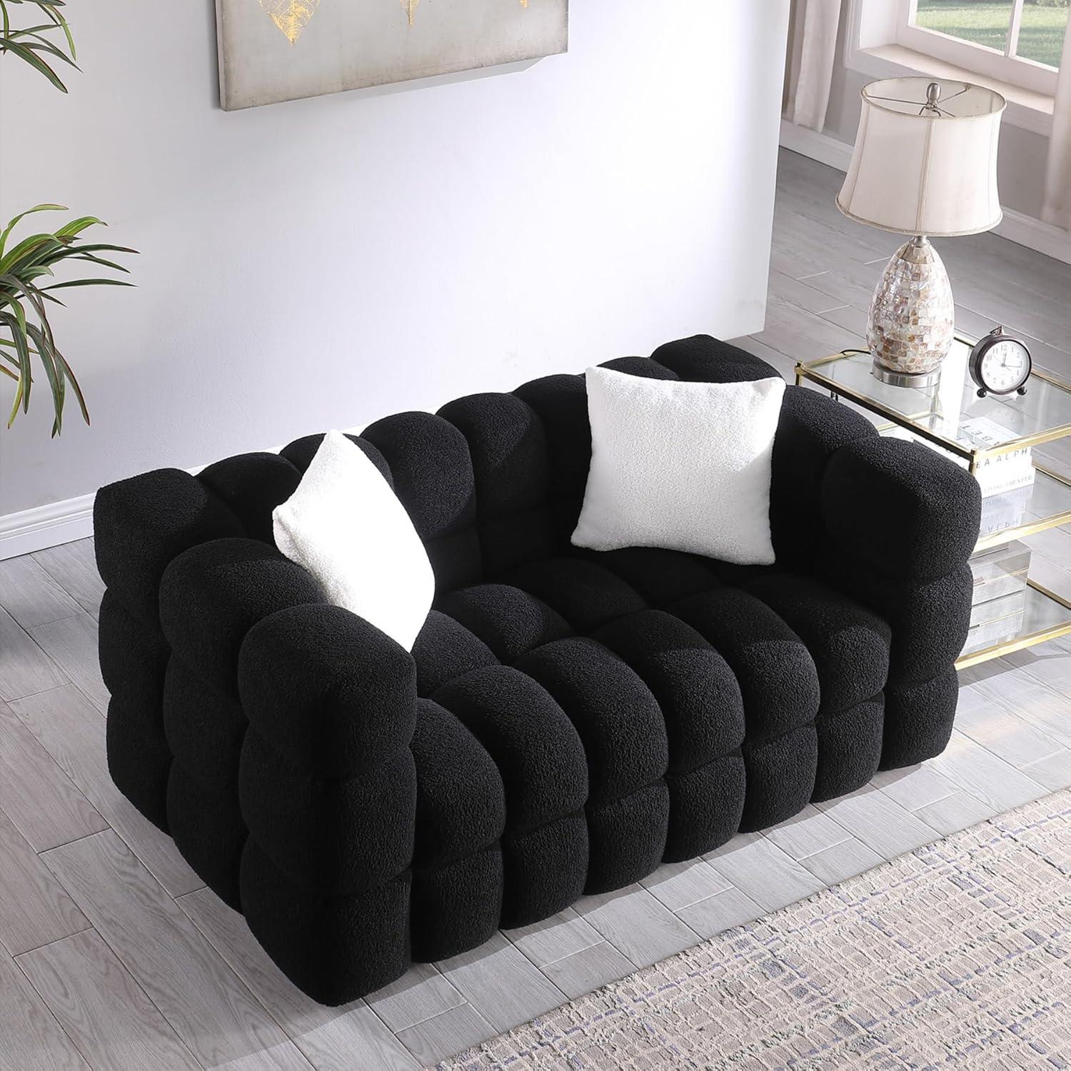 after spending time with this black bouclé sofa and loveseat set, we can confidently say it blends modern aesthetics with genuine comfort. The plush, textured fabric wraps around high-density foam cushions, creating a seating experience that is both supportive and inviting. Its unique biscuit-shaped design adds a contemporary flair that effortlessly becomes the focal point of any living room. We also appreciate how straightforward the assembly process is, making it an appealing choice for those who want style without the hassle. The solid wood frame ensures that durability isn’t sacrificed for looks, promising longevity alongside elegance.