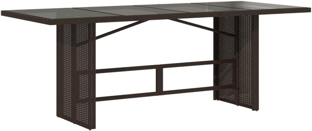 Late afternoon light skims the tempered-glass top of the Elegant 7 Piece Patio Dining Set with Thick Cushions, Durable Rattan, and Adjustable Seating for Outdoor relaxation, Brown — you end up thinking of it simply as the seven-piece set. From where you stand its visual weight feels grounded; the brown weave reads warm and considerable,and the table and chairs sit at a familiar dining-room scale rather than the petite patio pieces you sometimes see.You reach to test a cushion and feel a firm, dense give beneath a removable cover, while the synthetic rattan is cool and slightly glossy under your palm. A quick tug on the small handle produces a clean click as the backrest moves, an update that alters posture and the way the group occupies the deck. The tempered glass catches shifting light, the weave adds a modest textural anchor, and the arrangement settles into the space with an unforced, lived-in presence.