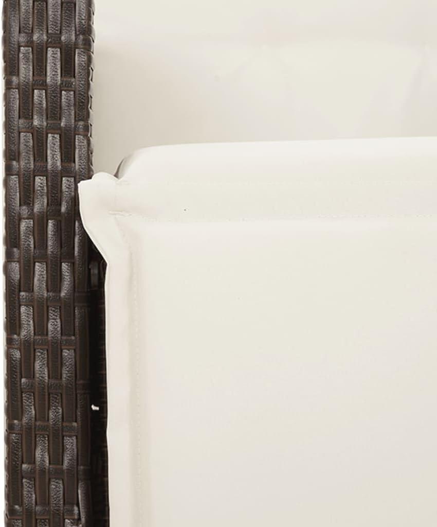 You notice the brown rattan weave before anything else — its interlaced strands break up flat surfaces and catch light in a way that makes the set read as textured rather than blocky. From a few steps away the weave softens the furniture’s silhouette, so the pieces sit more gently against paving or lawn; as you move closer the pattern becomes more legible, and shadows slip between the strands, creating a lacy, shifting edge that changes through the day.