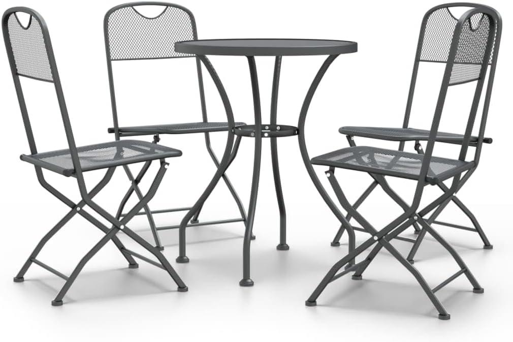 From the moment we set up this outdoor dining ensemble, it became clear that it was designed with both style and functionality in mind. The sleek anthracite finish blends effortlessly with various outdoor decors, instantly elevating the ambiance of our garden corner.The expanded metal mesh surface is surprisingly sturdy yet lightweight, making the set durable enough to withstand changing weather conditions thanks to its e-coating finish. This protective layer really does its job, keeping the set looking fresh through sun, rain, and even the occasional breeze. Assembly was straightforward, allowing us to enjoy our outdoor meals without any hassle.