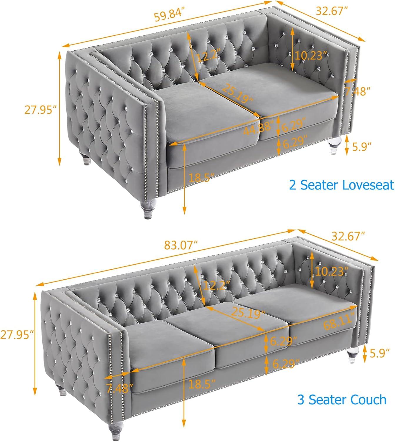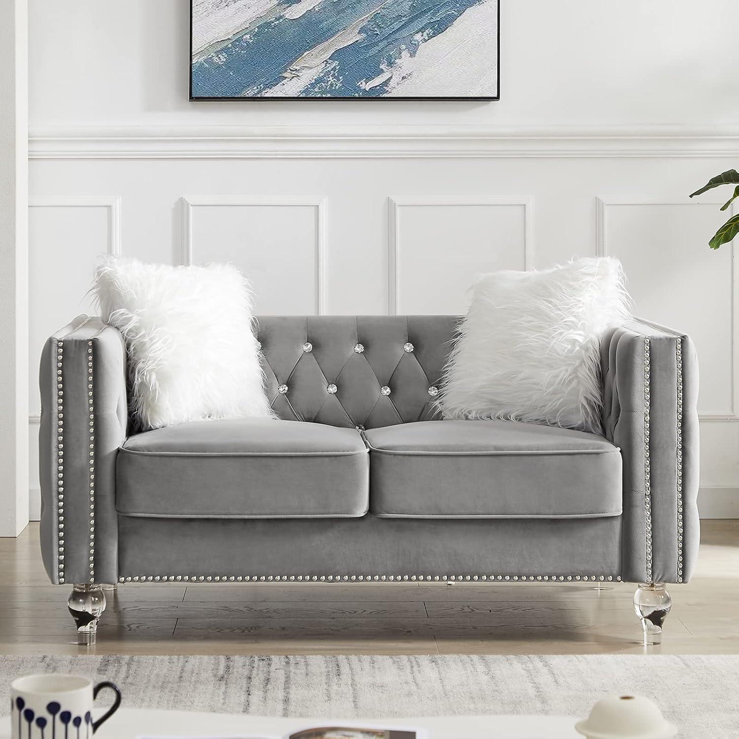 When placed in the bedroom, the loveseat transforms into a cozy reading nook or a stylish seating area, providing a functional retreat within a personal space. The high-density foam cushions supported by sinuous springs retain softness while offering resilience that maintains shape throughout daily use. Its elegant nailhead trim and crystal accents create a chic atmosphere that elevates bedroom décor without overwhelming the room. Easy to assemble and maintain, this sofa adapts to different environments with practicality and grace, making it a versatile choice for any home.