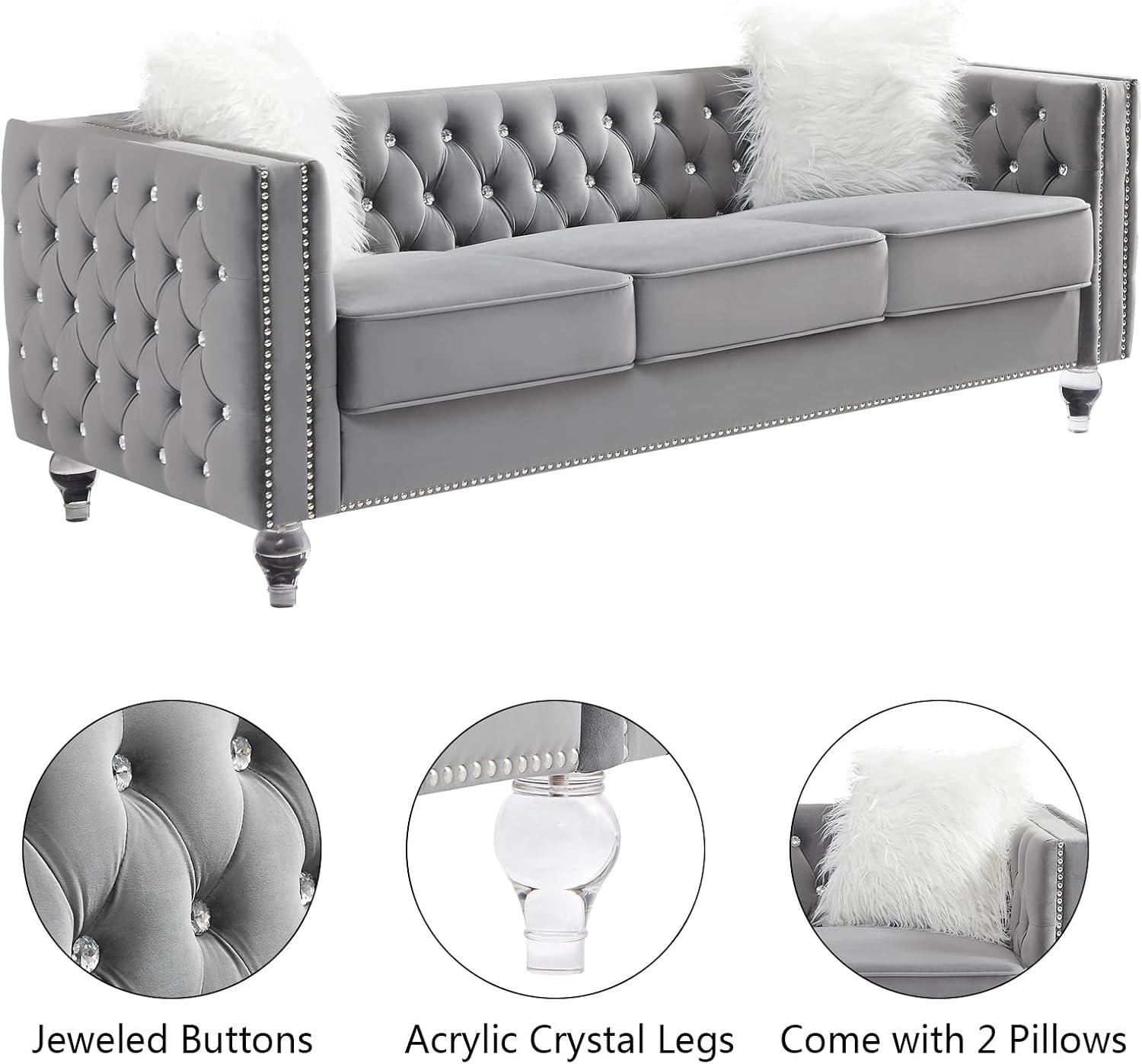 Details matter, and this loveseat excels with carefully crafted elements that last. The diamond-shaped buttons are securely sewn into the fabric, ensuring durability beyond surface appeal. Complementing the tufted back and square arms, the silver metal legs offer both sturdy support and a sleek finish that echoes the jewel-like buttons. Included throw pillows round out the experience, providing extra lumbar support while enriching the overall aesthetic. Below is a quick glance at its standout features: