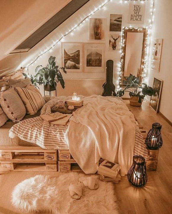 Adorn your bedroom with string lights to add a magical ambiance. Whether you prefer delicate fairy lights, charming globe bulbs, or vintage Edison-style bulbs, draping them along your bed frame, ceiling edges, or even creating a canopy can transform your room into an ethereal retreat. Check out options for string lights to find your ideal style.