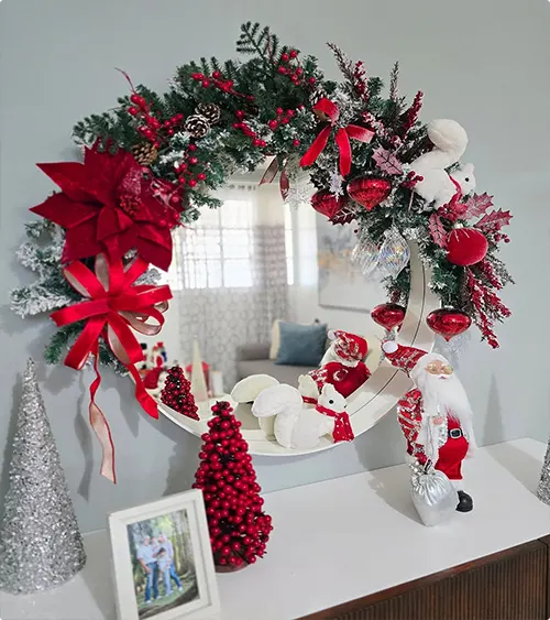 Layer plush blankets, cushions, and stockings in shades of red and white. Accent with soft candlelight or twinkling fairy lights, play your favorite festive melodies, and sip hot chocolate for an inviting, cheerful atmosphere.