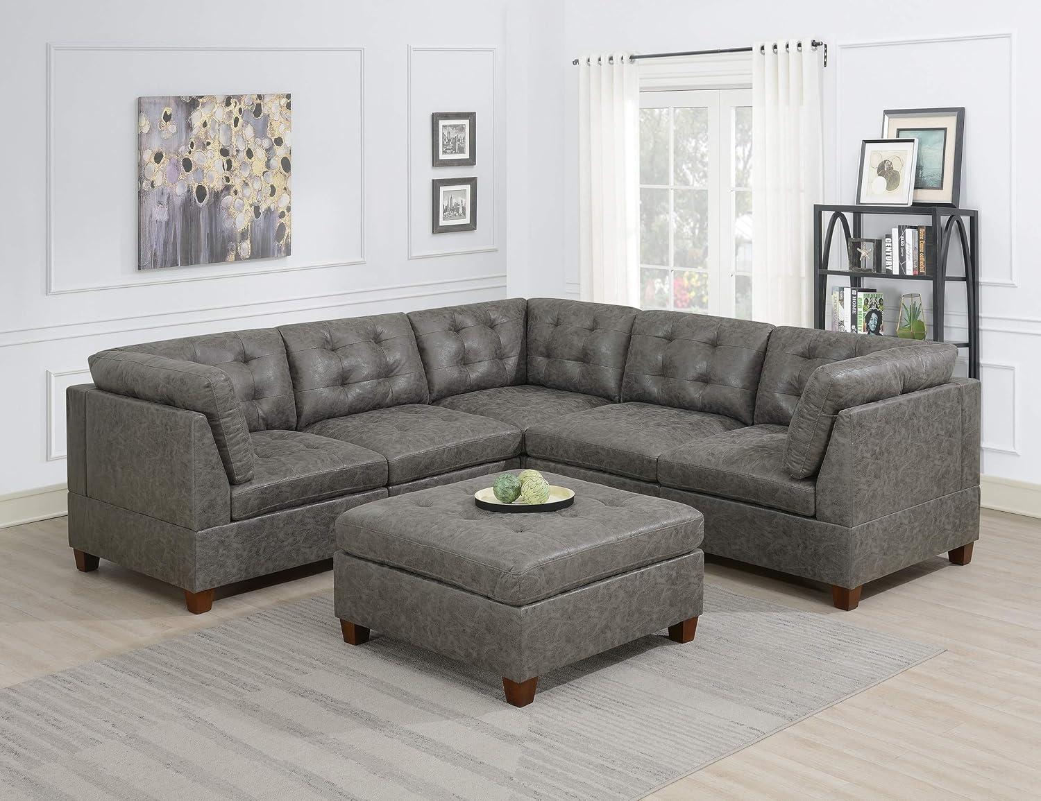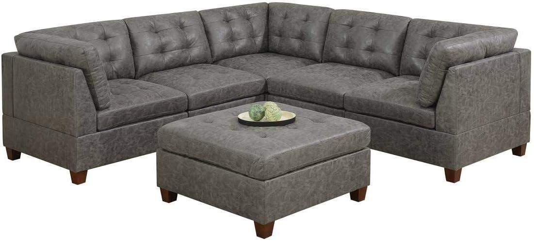 We found this 6-piece sectional to be a versatile centerpiece for any contemporary living room. Its antique grey hue brings a subtle elegance that complements a variety of decor styles, from modern minimalism to cozy conventional spaces. The breathable leatherette upholstery feels surprisingly comfortable and easy to maintain, while the tufted back and seat add a refined touch without sacrificing softness. The modular design, consisting of three corner wedges, two armless chairs, and an ottoman, offers plenty of options for rearranging or expanding the seating area based on our needs.