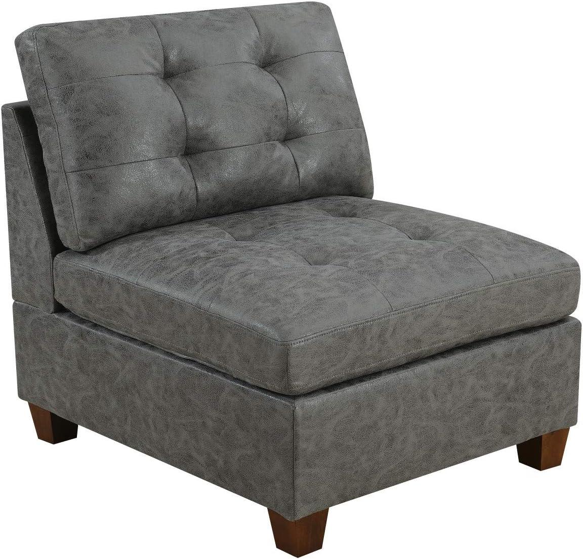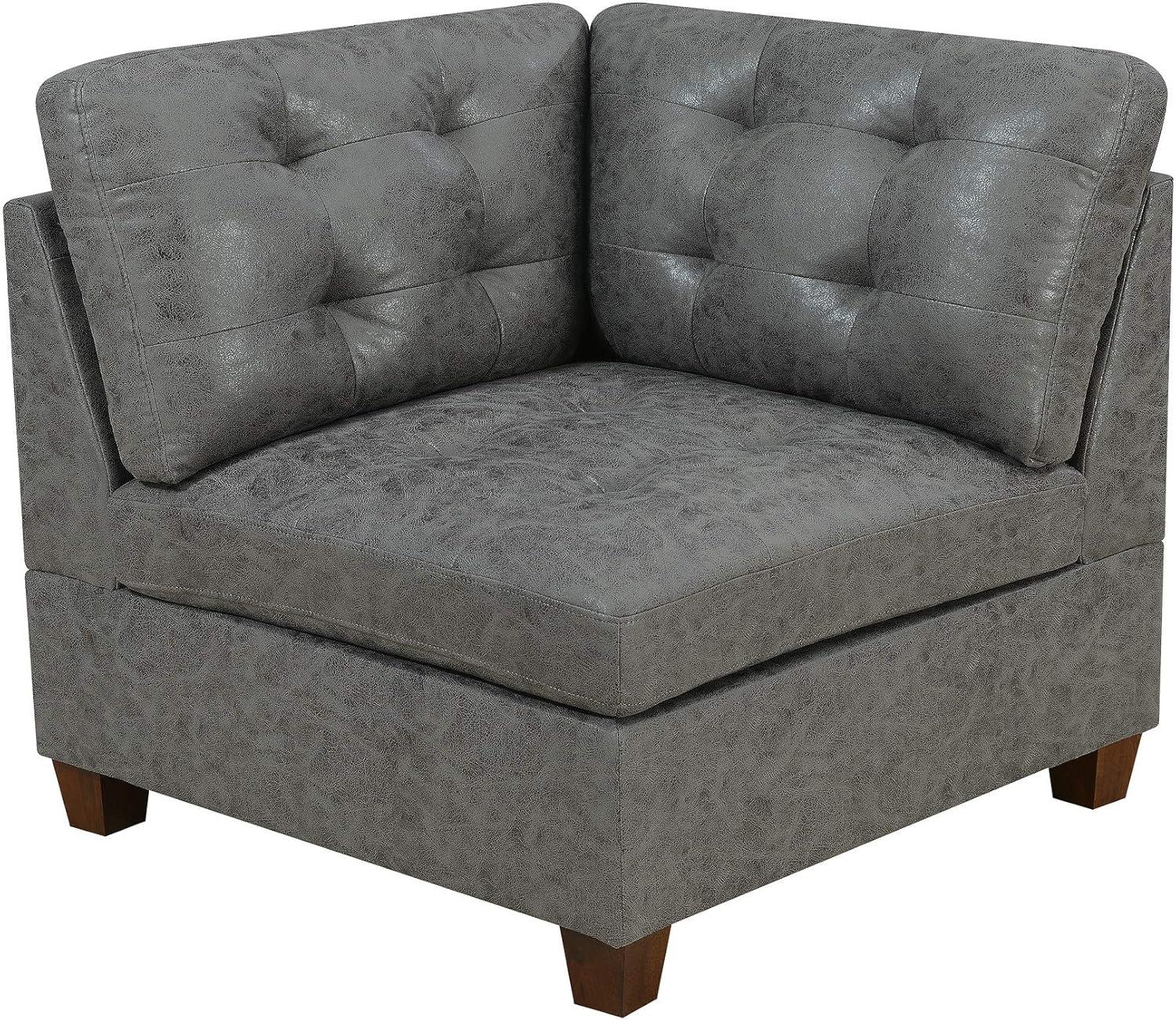 Our first impression is dominated by the elegant antique grey finish, which perfectly bridges contemporary flair with a timeless charm. The modular nature of the set lends remarkable versatility, allowing us to shape our living space as we wish while keeping a cohesive look.The breathable leatherette upholstery adds both a luxurious texture and practicality, ensuring comfort without sacrificing style.The standout tufted detailing on both the back and seat cushions introduces a refined, classic touch that elevates the entire aesthetic without overwhelming it.