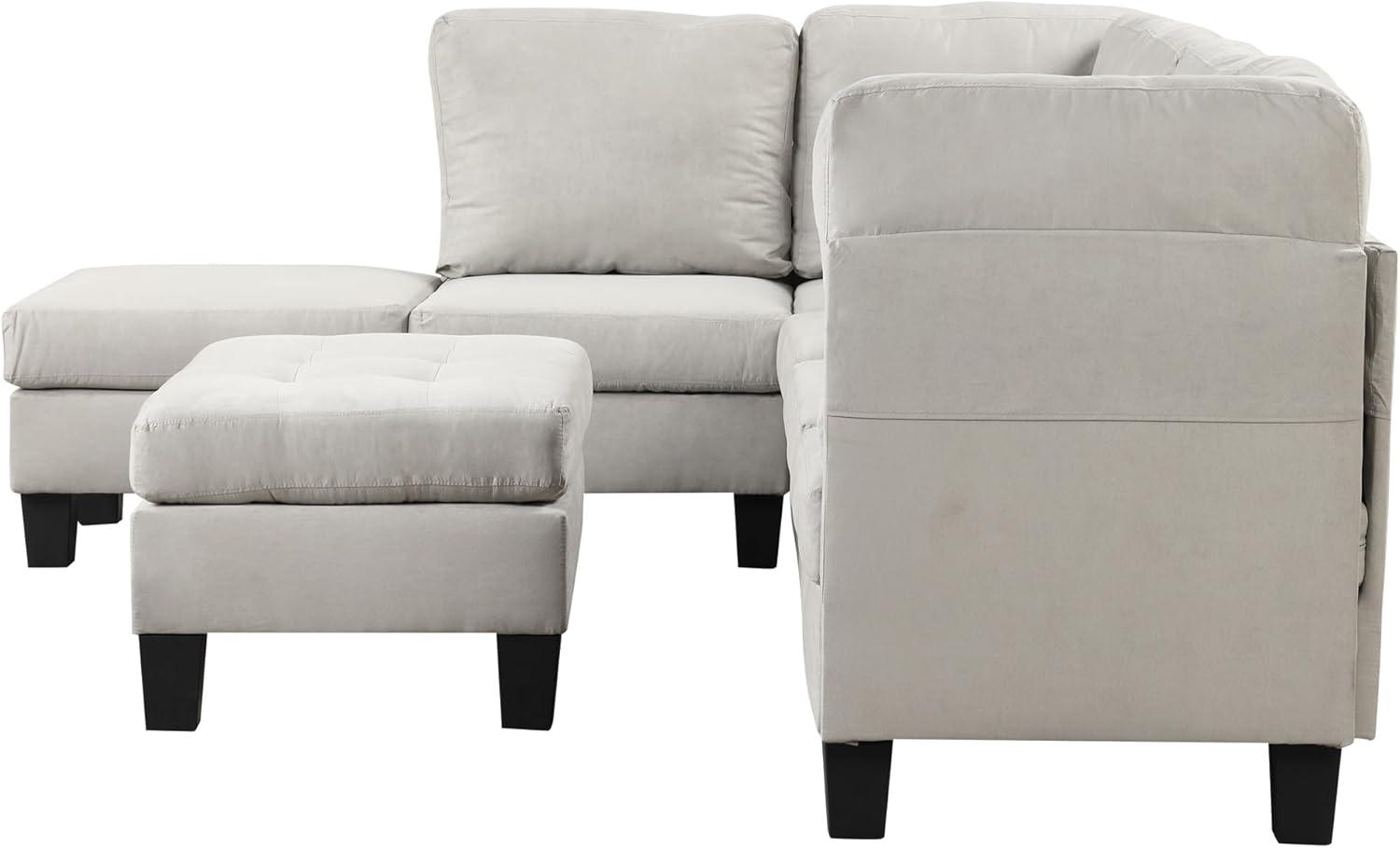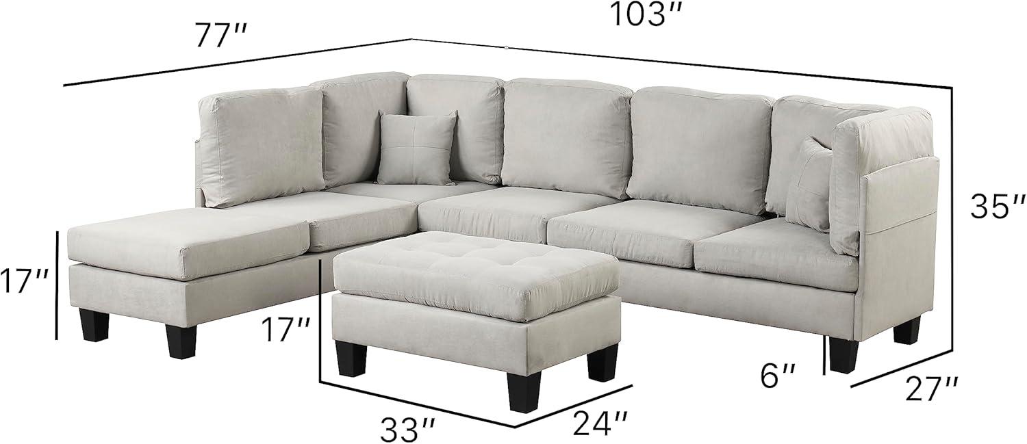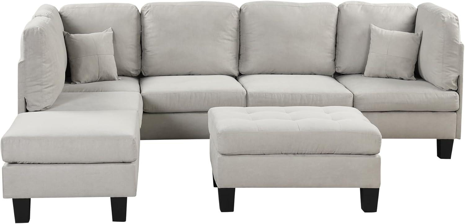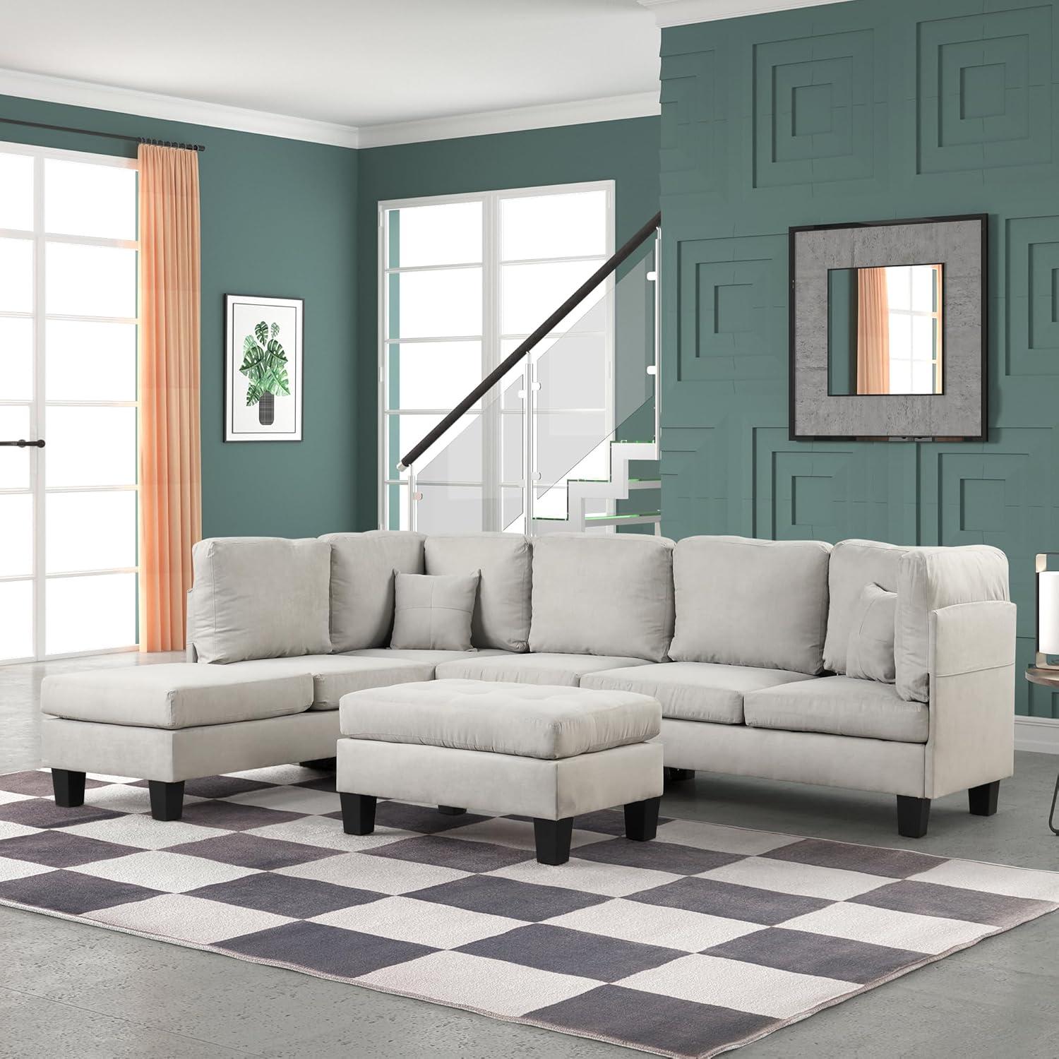 Bringing together style and practicality, this sectional sofa effortlessly transforms any living area into a modern haven. the sleek L-shaped configuration, paired with a reversible chaise and an ottoman, offers versatile seating options that adapt seamlessly to our space and lifestyle. Upholstered in plush microfiber suede, it invites us to sit back and relax, while the rich texture adds a cozy yet refined touch. The cushions are easily removable and machine washable, making upkeep simple and ensuring the sofa stays fresh over time – a perfect balance of comfort and convenience for our daily use.
