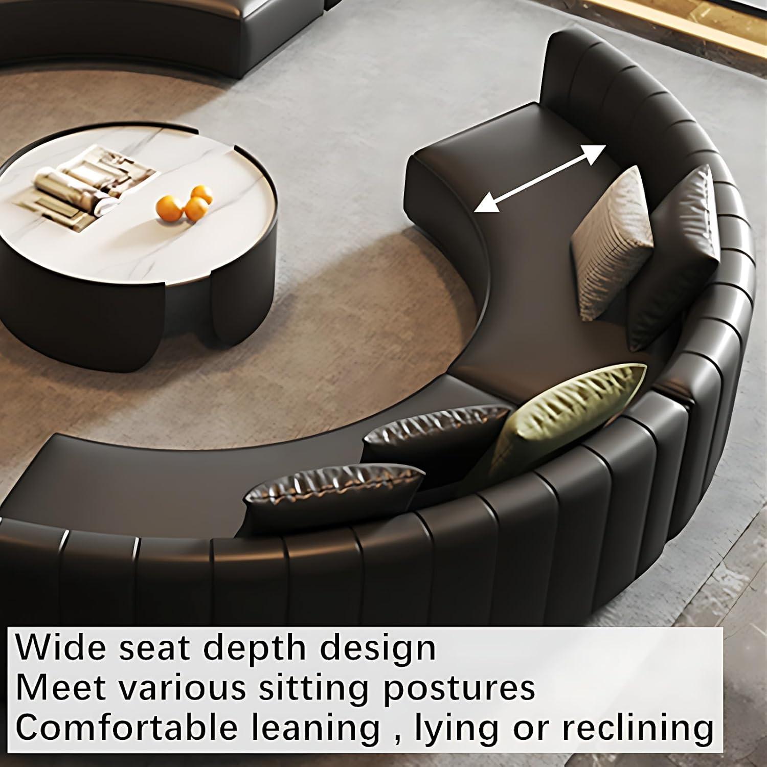 Upon unboxing and setting up this expansive semi-circular sofa, our first impression centered around its commanding presence. Crafted with premium black leather, the couch exudes a sleek and contemporary vibe that instantly elevates any living room, lounge, or office space. The modular design allowed us to customize the layout easily, fitting perfectly into our available area while maintaining fluid, ergonomic support throughout.Its oversized frame invites multiple seating arrangements,making it ideal for both relaxing evenings and professional meetings without sacrificing comfort.