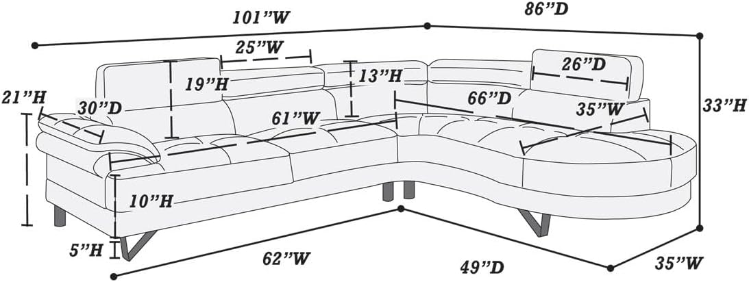 We recently had the chance to spend some quality time with the Living Room Furniture sectional Sofa 2pc Set in white faux leather, and we’re excited to share our thoughts. This elegant sectional caught our eye with its sleek tufted cushions and modern design, featuring a solid pine frame supported by sturdy metal legs and a plywood base panel. The flip-up headrests add a level of comfort and customization thatS hard to find in sofas of this style. Over the past few weeks, we’ve put this chic two-piece set through its paces in our living space, exploring its durability, comfort, and overall aesthetic.Here’s what we discovered.
