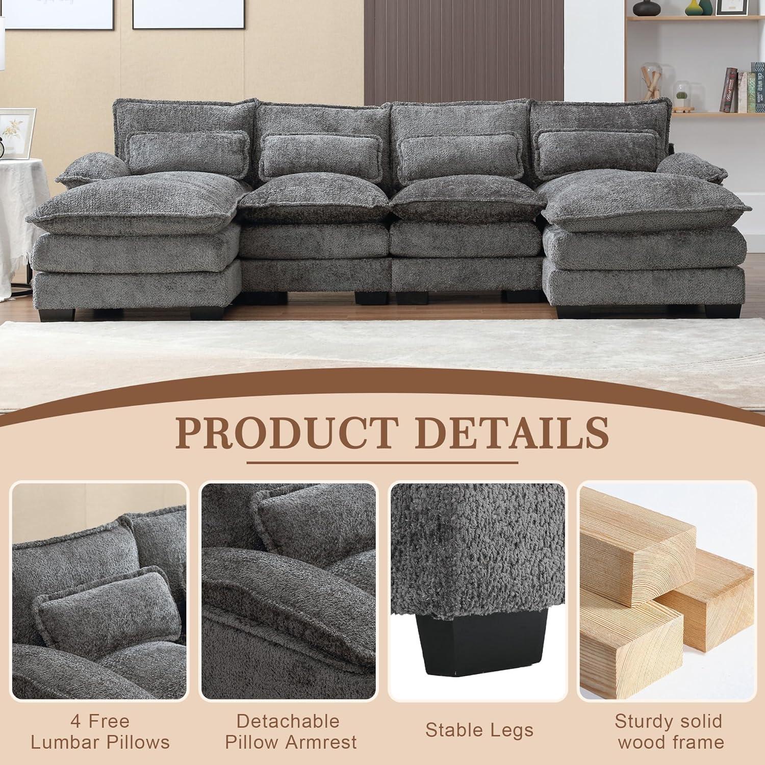 after spending considerable time with this modular sectional, we can confidently say it excels in both versatility and comfort. Its flexible configuration allows us to rearrange pieces effortlessly, adapting to different room layouts or occasions, whether for lounging or hosting guests. The plush chenille upholstery paired with high-density foam cushions strikes a perfect balance between softness and support, making long hours of sitting or sleeping truly enjoyable. The sturdy solid wood frame and legs provide peace of mind in terms of durability, while removable, machine-washable covers ensure maintenance stays hassle-free.