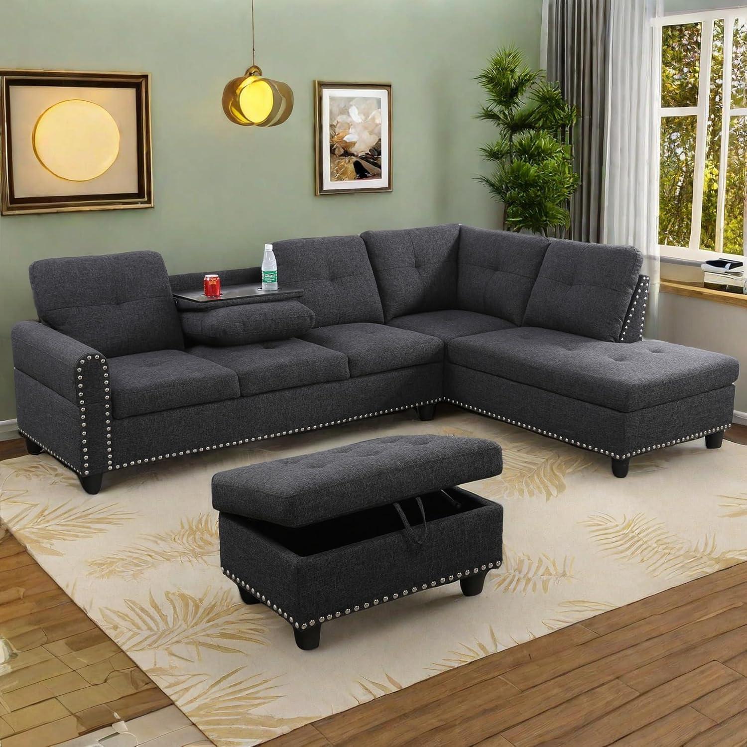 Finding the perfect sectional sofa that combines style, comfort, and functionality can be a challenge, but we recently had the chance to experience the L Shaped Sectional Sofa with Ottoman in dark gray linen firsthand. From its sturdy wooden frame to the thoughtfully designed ergonomic backrest, this modern couch aims to elevate any living space-whether thatS a cozy living room, a professional office, or even a bedroom. With its sleek nail-head detailing and versatile modular layout, accompanied by convenient built-in cup holders, we were eager to put it to the test and see how well it holds up to everyday use. Here’s what we discovered after spending some quality time with this contemporary sectional.