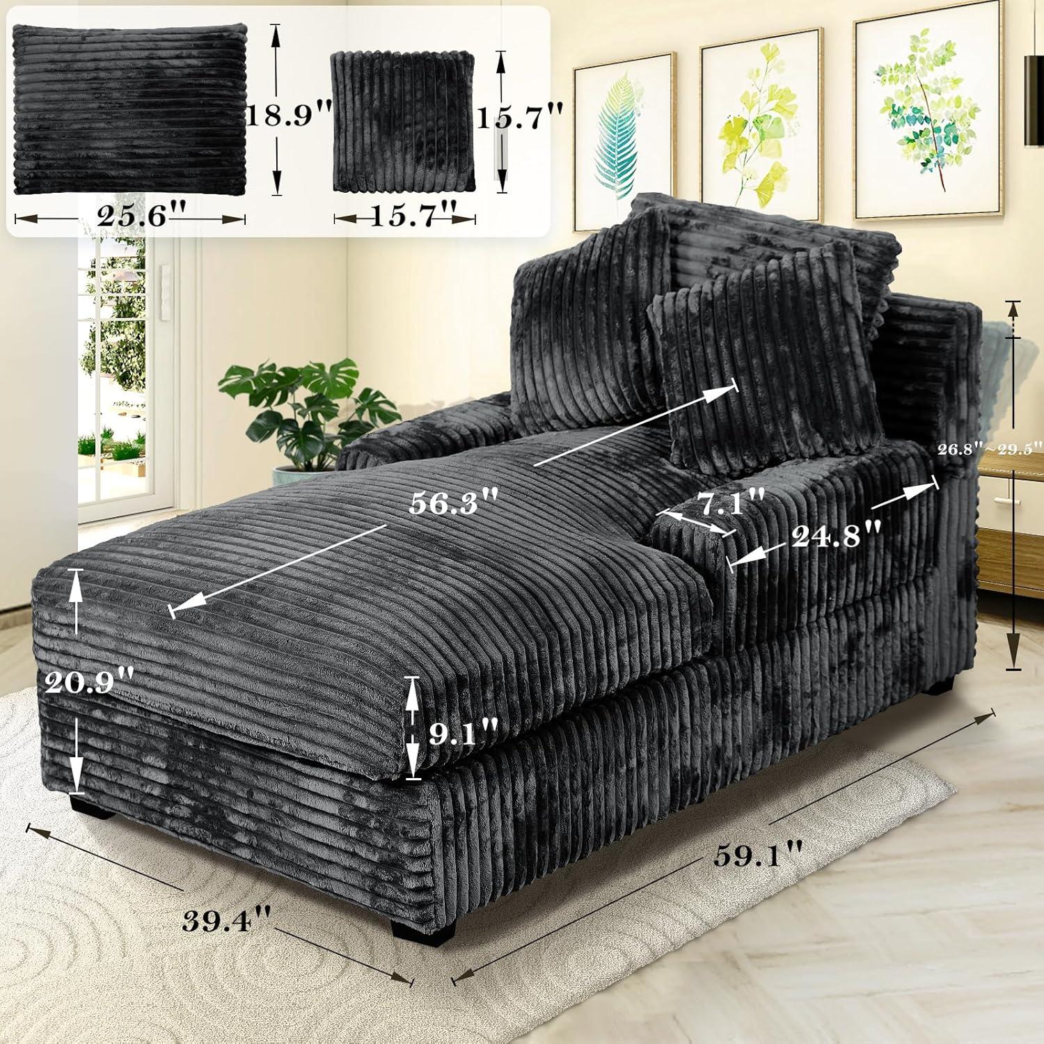 This chaise lounge offers a brilliant blend of style, comfort, and functionality, making it a standout piece for various indoor settings.With an adjustable backrest that can be set between 90° and 120°, it easily adapts to different activities – whether you’re reading, relaxing, or taking a rapid nap. Its extra-wide 39-inch seat combined with a 9.1-inch thick cushion, filled with high-density sponge and innerspring, ensures a supportive yet plush experience, enhanced further by the included lumbar pillows. upholstered in soft, breathable corduroy fabric, it fits beautifully in living rooms, bedrooms, studies, and even office spaces, demonstrating remarkable versatility beyond conventional seating.