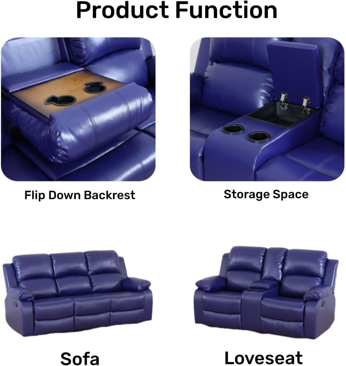 We recently had the chance to experience the Bonded Leather 3-Piece Sofa Set in blue, and we’re excited to share our thoughts. Combining manual recline features with thoughtfully integrated storage and a drop-down coffee table,this set strikes a balance between style and practicality. The rich bonded leather upholstery and stitched detailing give the pieces a polished look, while the plush cushions invite you to kick back and relax. Over the course of using this set, we explored how it fits into different living spaces and whether it truly delivers on comfort and convenience. Here is our full review after living with it in our own home.