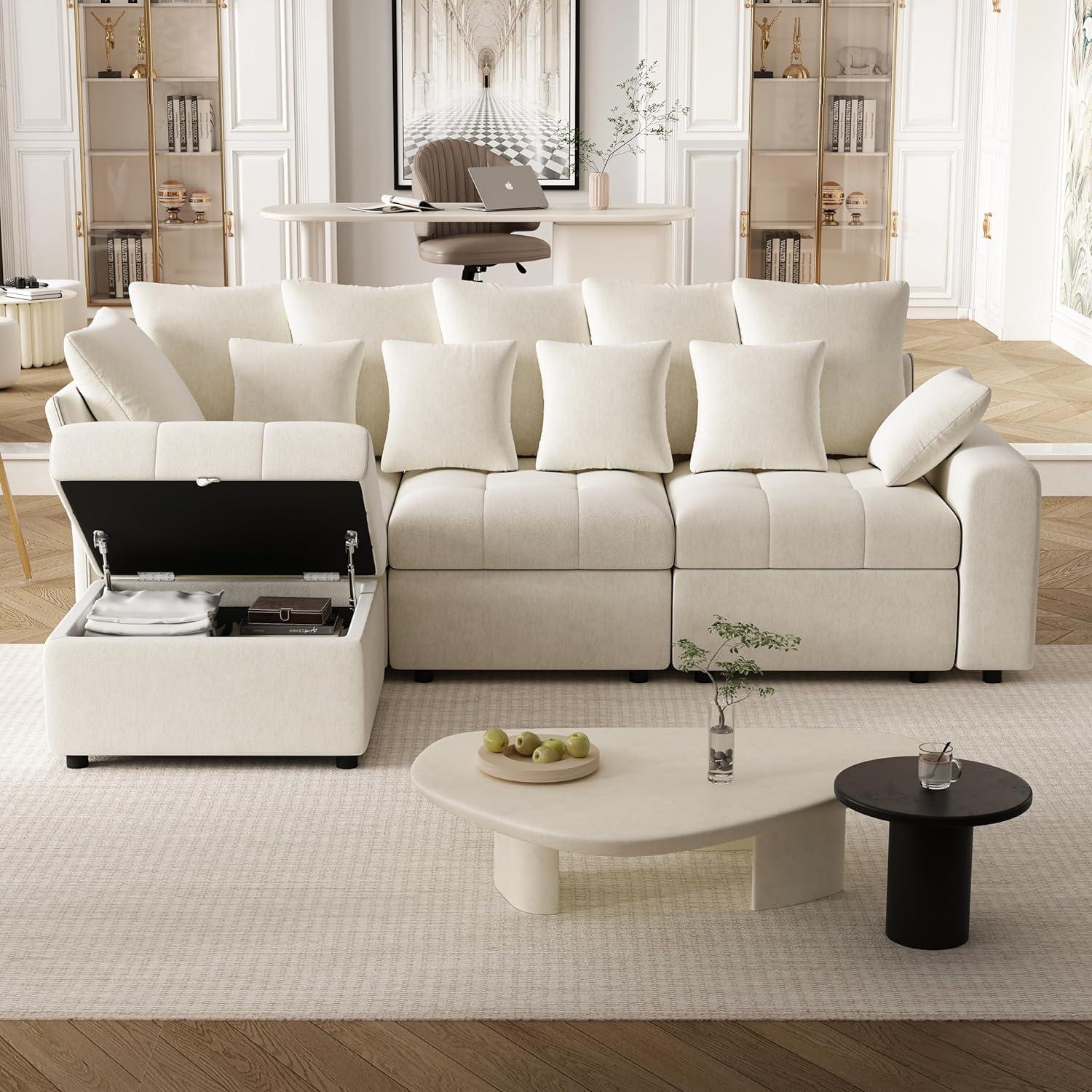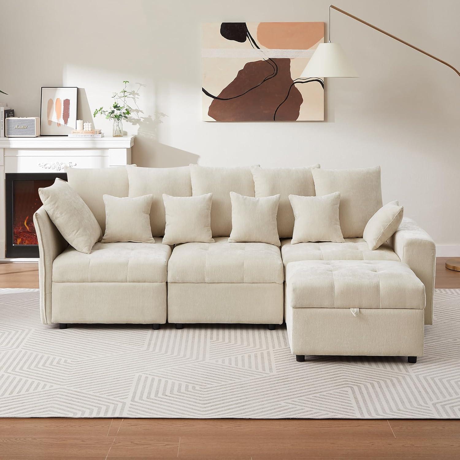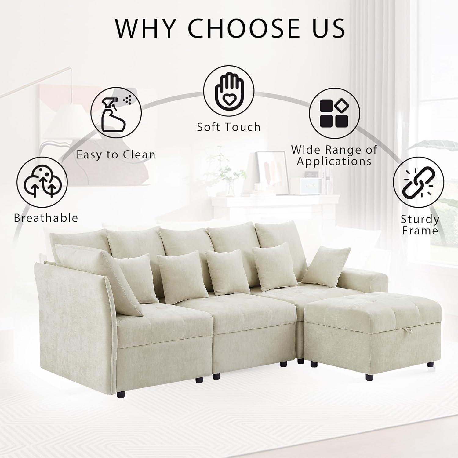 Our time using the convertible ottoman truly highlighted the modular nature and adaptability of this sectional. We appreciated how effortlessly the ottoman slides and aligns with the main sofa to create a seamless chaise lounge, offering ample space to stretch out after a long day. The added storage compartment within the ottoman was a game-changer for keeping our living area tidy-we stored everything from extra pillows to books without sacrificing valuable floor space. The smooth chenille fabric not only feels soft against the skin but also maintains its elegant beige tone, enhancing the couch’s aesthetic appeal in our apartment.