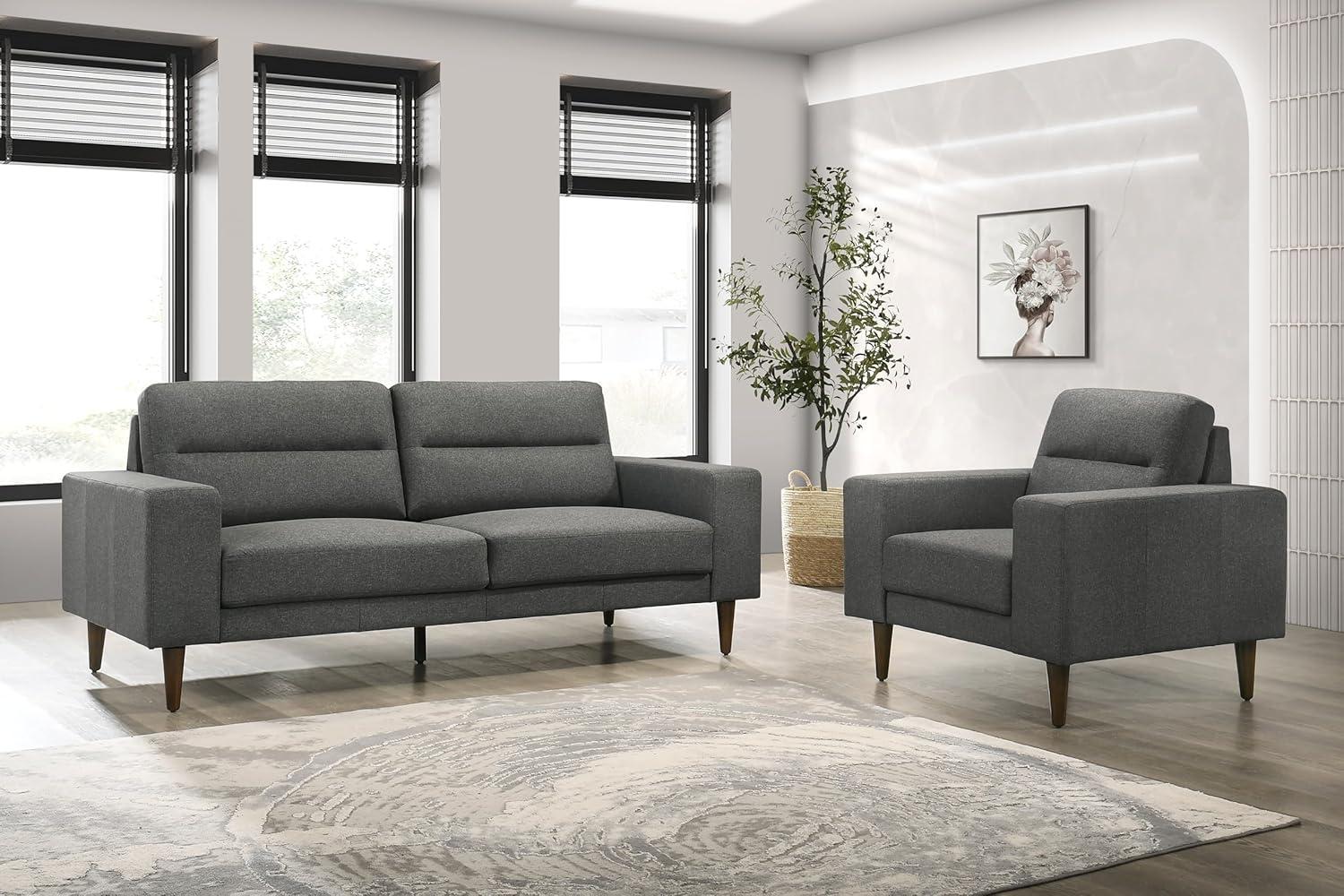 | Compact sofa and chair dimensions work well in smaller spaces without sacrificing style | Wood legs may require periodic cleaning to avoid scratches and maintain sleek appearance |