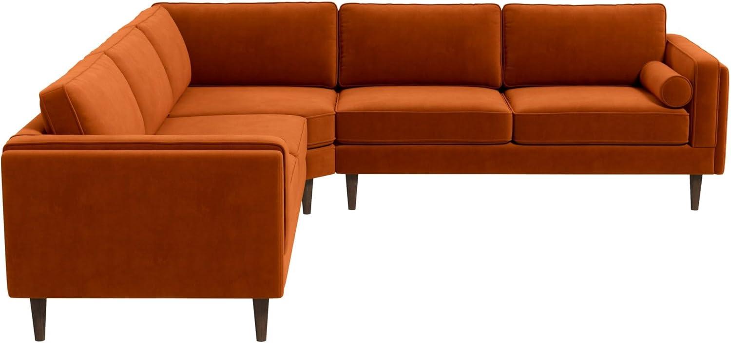 From the moment we set eyes on this corner sectional, it was clear that style and comfort were expertly blended. The rich burnt orange velvet upholstery brings a warm, inviting glow to any living room, while the mid-century modern design-with its tapered walnut-finished legs-adds a timeless elegance that complements various décor styles. The sofa’s compact footprint makes it an ideal choice for smaller spaces without compromising on seating capacity or comfort. We immediately appreciated the balance between aesthetic appeal and practical design, especially the versatility offered by removable seat and back cushions.