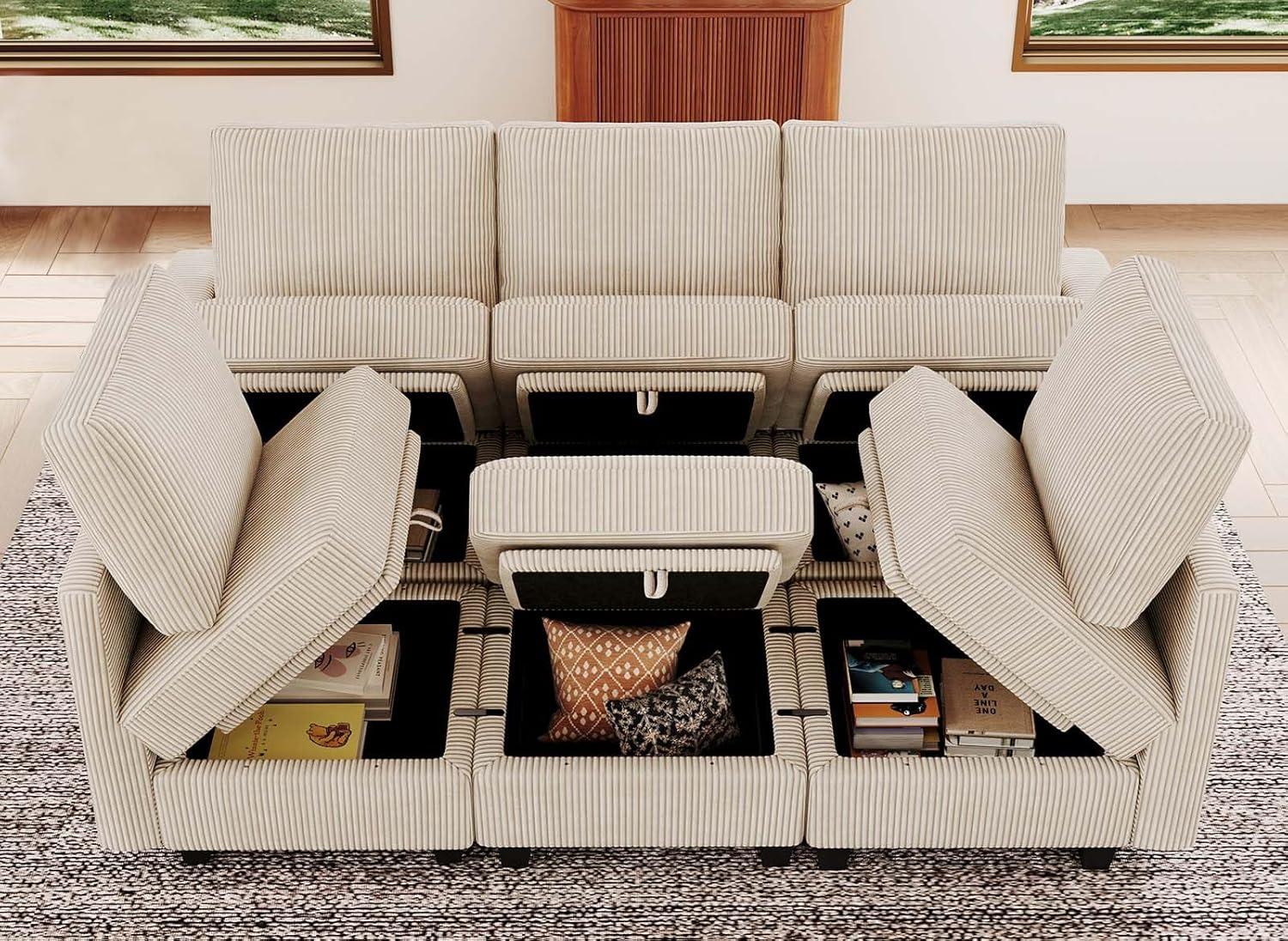 Alongside the adaptable layout, the built-in storage under each seat and ottoman is a game-changer for keeping our living space clutter-free.From blankets to toys, the deep compartments help us neatly tuck away essentials, making the couch not only comfortable but incredibly practical. Below is a quick overview of the main configuration benefits we noticed: