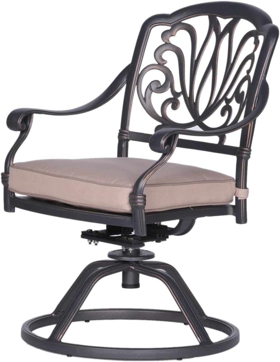 - Comfort: Cushioned swivel rocker chairs with all-weather fabric