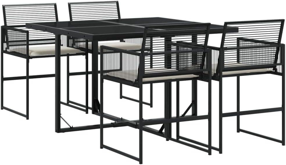 Our time with this outdoor dining ensemble revealed a perfect balance between comfort and craftsmanship. The plush, cream-colored cushions invited us to relax as conversations flowed effortlessly into the evening air. Each chair supports you just right, making it hard to leave once you’ve settled in. Crafted from sturdy PE rattan paired with powder-coated steel, the set impressed us with its resilience against the elements, yet its sleek black finish maintained a refined style that elevated our patio’s overall look. We appreciated the tempered glass tabletop, which not only added elegance but also made cleaning spills rapid and worry-free.
