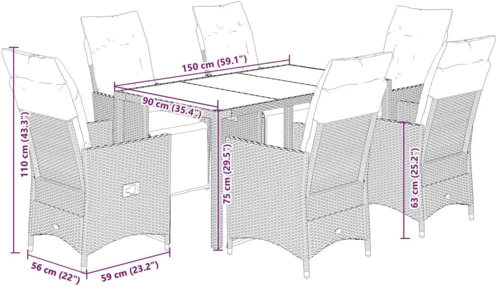 Our experience with this set has been nothing short of delightful when it comes to both comfort and practicality.The soft, removable cushions with zipper closures provide excellent support, allowing us to lounge for hours without feeling stiff or uncomfortable. Whether we’re dining al fresco or just relaxing with friends, the spacious seating comfortably accommodates up to six people, giving everyone plenty of room to stretch out. The matte black poly rattan paired with the tempered glass table surface brings a sleek, modern vibe that elevates the ambiance of our garden.