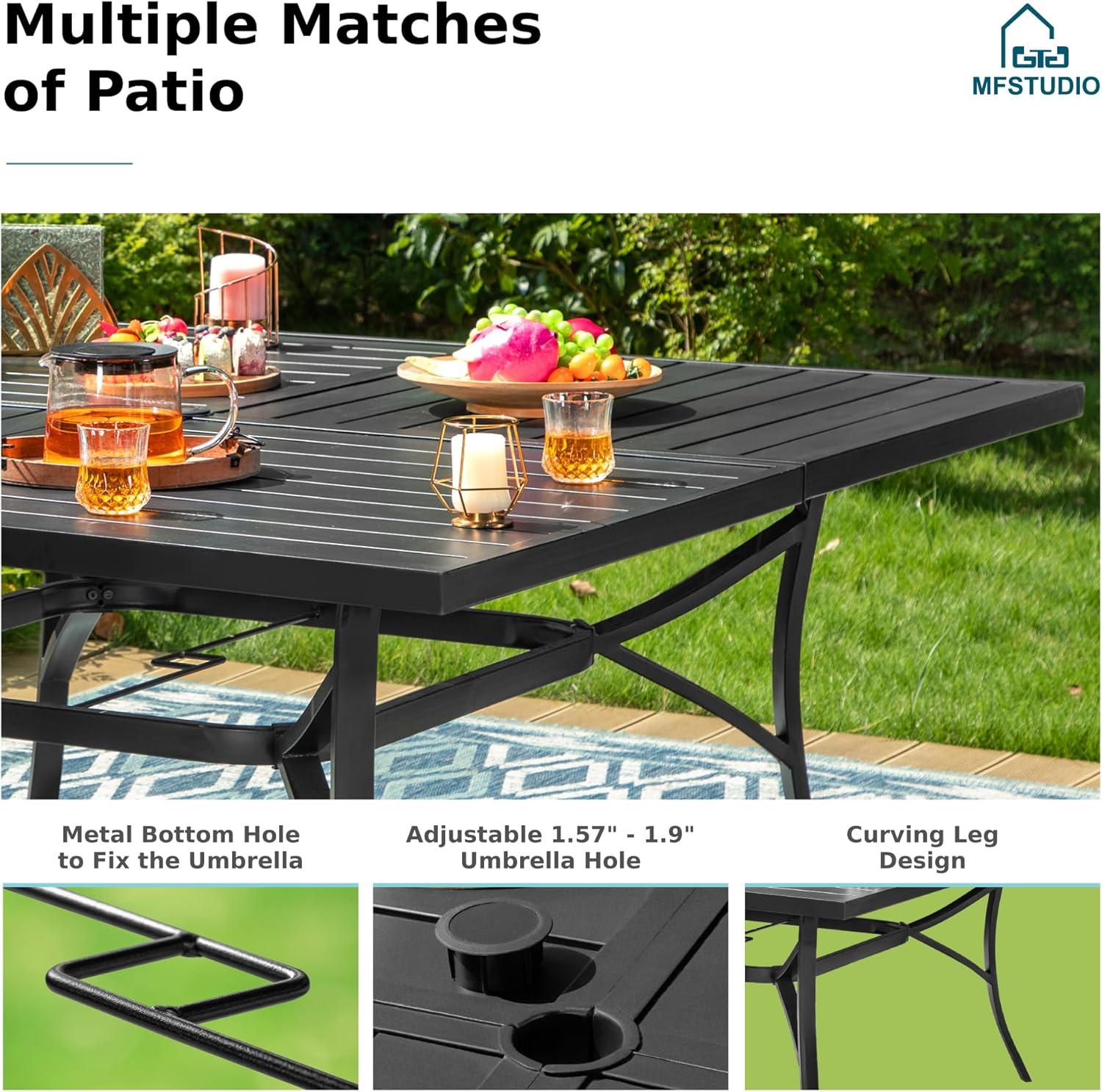 the set immediately impressed us with its blend of robust materials and thoughtful craftsmanship. The square metal table boasts a rust-resistant coating, making it resilient against various weather conditions, which is essential for outdoor furniture longevity. Its large 60-inch surface accommodates eight people with ample space, and the adjustable umbrella hole adds versatility to customize shade options.The metal finish is sleek yet practical, allowing for easy maintenance by simply wiping it clean, ensuring the set stays looking fresh through all seasons.
