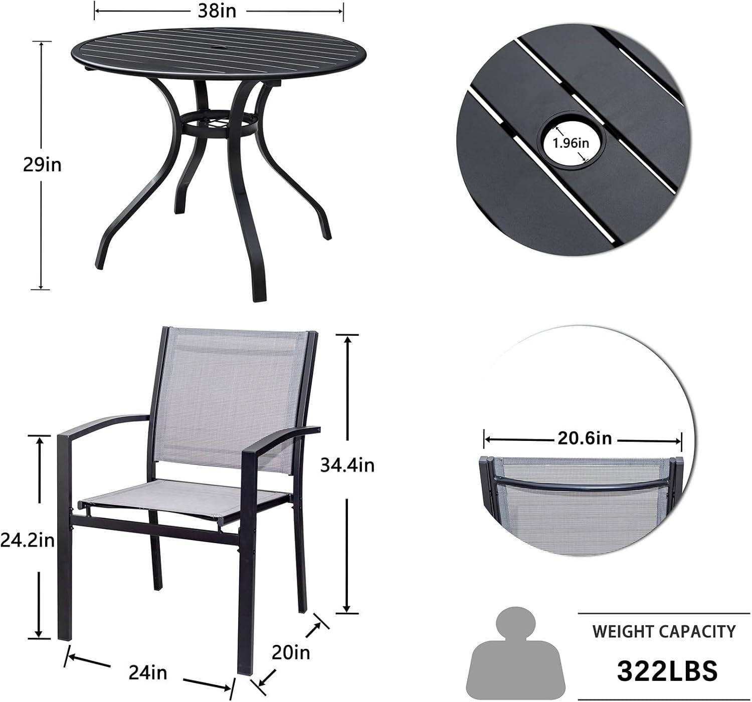 Design-wise, the clean lines and classic construction lend a modern yet timeless appeal that fits seamlessly into any outdoor décor. The spacious 38-inch round table displays a sleek metal slatted surface, complementing the chairs both functionally and visually.The umbrella hole,sized at 1.5 inches, is a thoughtful addition that enhances usability during sunny days. Assembly was straightforward, with well-organized parts and clear instructions allowing us to have the set ready within an hour-a boon for anyone eager to enjoy their outdoor space without a prolonged setup.