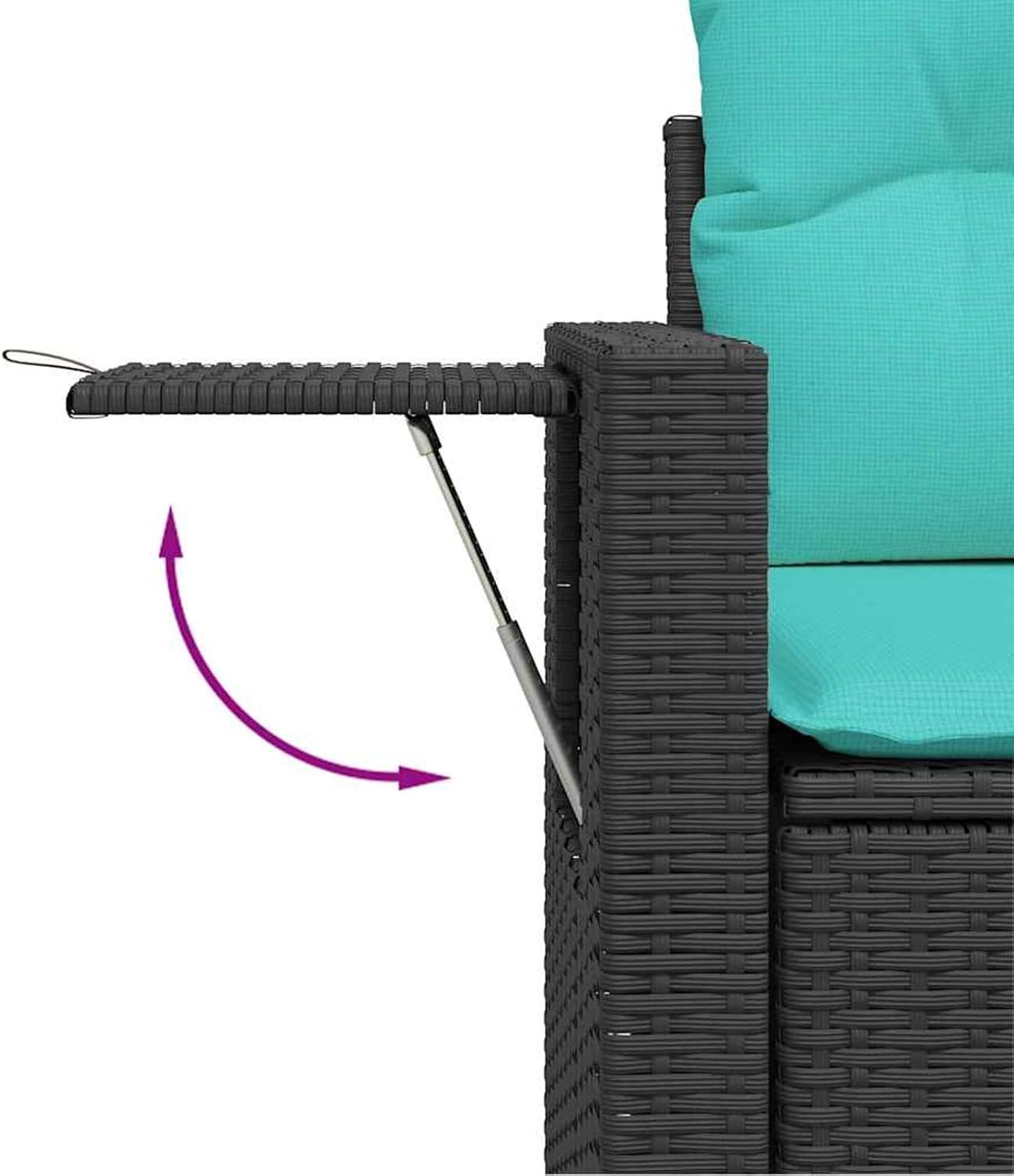 | Elegant & Cohesive Design The sleek black poly rattan paired with plush blue cushions offers a stylish, modern look that complements various outdoor décors. |