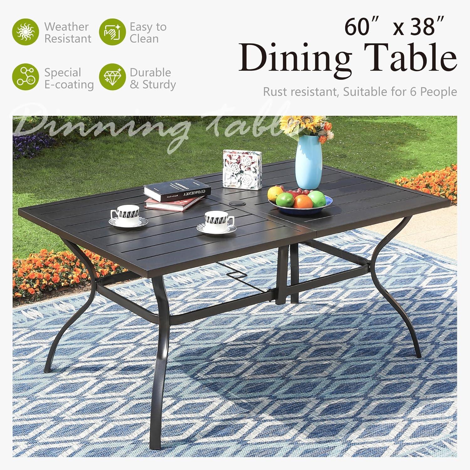 | Dining Table | 60″ L x 38″ W x 28″ H | Umbrella hole diameter: 1.57″ |