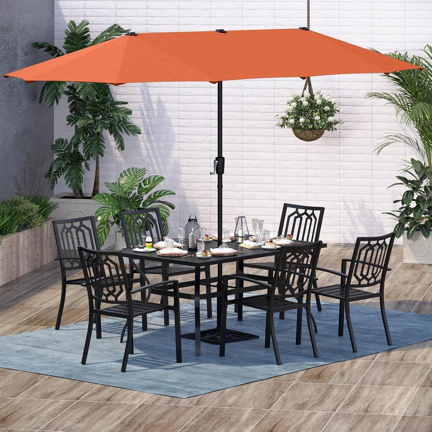 right out of the box, this 8-piece set impressed us with its solid build and thoughtful design, blending style and functionality perfectly for outdoor living. The sturdy wrought iron frame coated for rust resistance ensures the dining table and chairs feel substantial yet comfortable, promising longevity on patios, balconies, or poolside areas. The orange-red double-sided umbrella instantly brightens the space,while its expansive 13ft by 7.8ft canopy offers notable shade coverage to keep everyone cool and protected from up to 99% of UV rays. We especially appreciated the crank mechanism that makes opening and closing the umbrella remarkably easy,giving it a user-kind edge that’s perfect for quick setup or adjustments on sunny days.