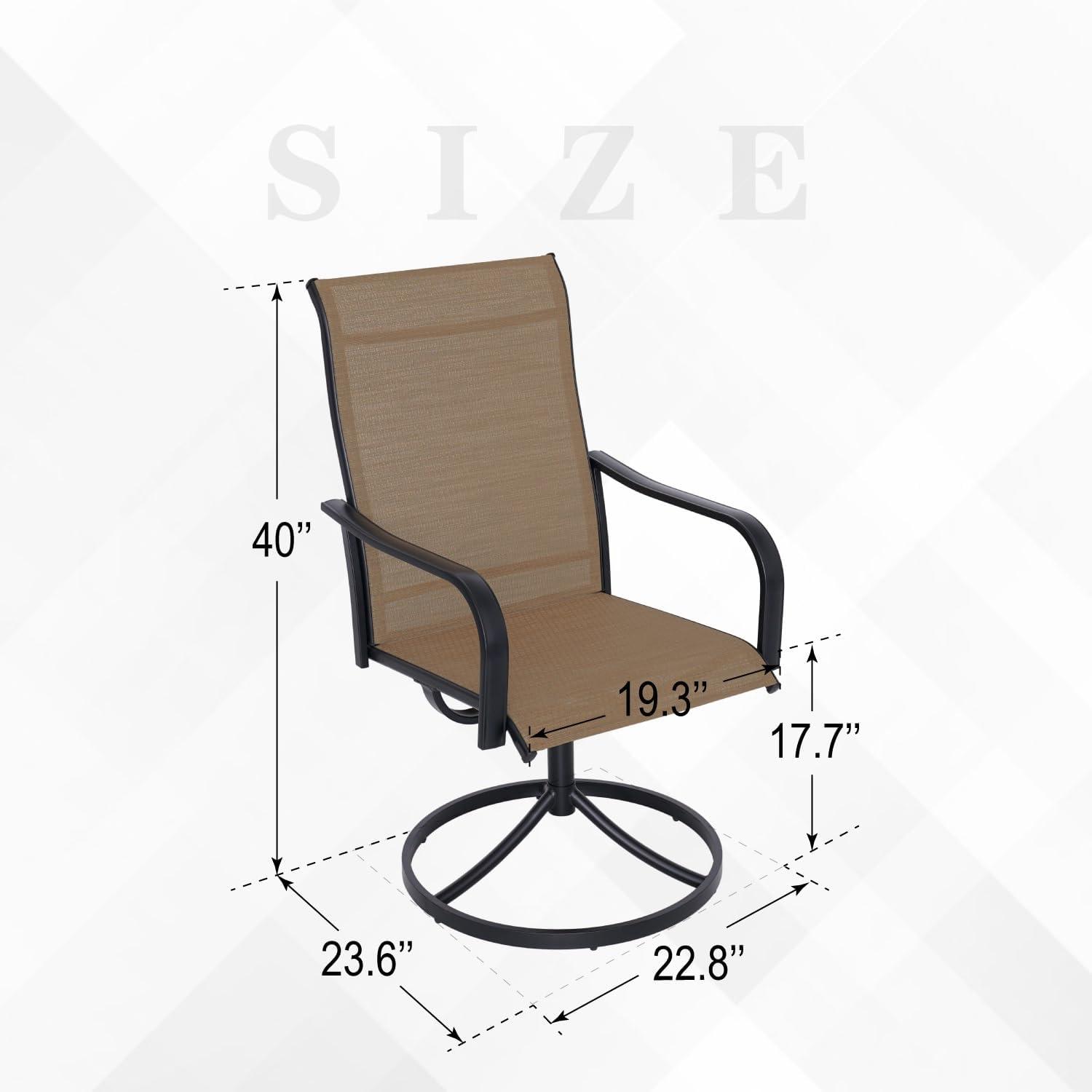 After spending considerable time using this outdoor dining set, we can confidently say it strikes a fine balance between style, comfort, and durability. The spacious 58-inch round table provides ample room for family meals or entertaining guests, while the high back swivel chairs offer excellent support with a generous 300 lbs weight capacity.The cambered armrests add an extra touch of ergonomic comfort,making long conversations and laid-back dinners enjoyable. What truly stood out was the use of breathable yellow Textilene mesh fabric on the chairs – it remains cool and dry even on warmer days, blending practicality with vibrant aesthetics that brighten any outdoor setting.