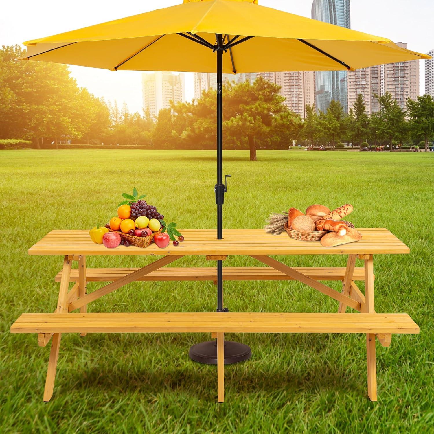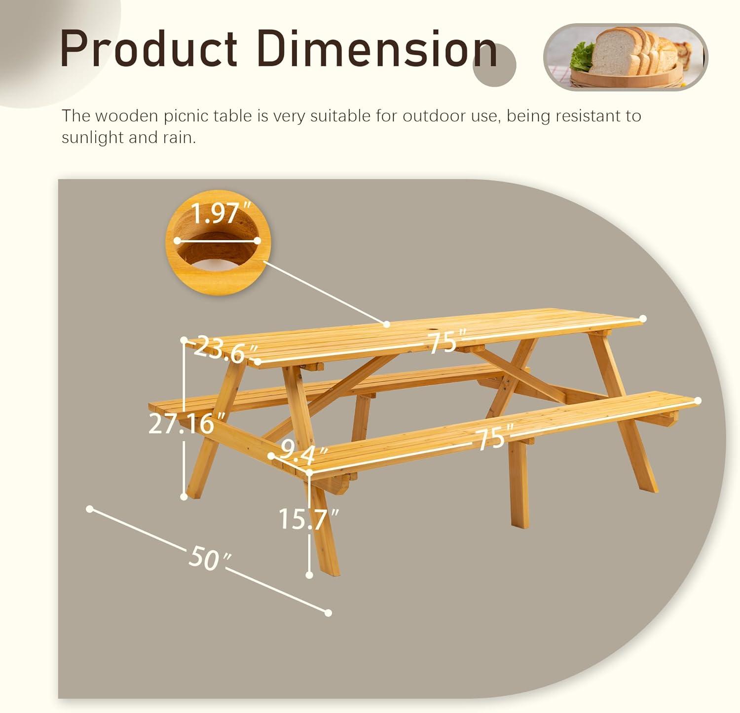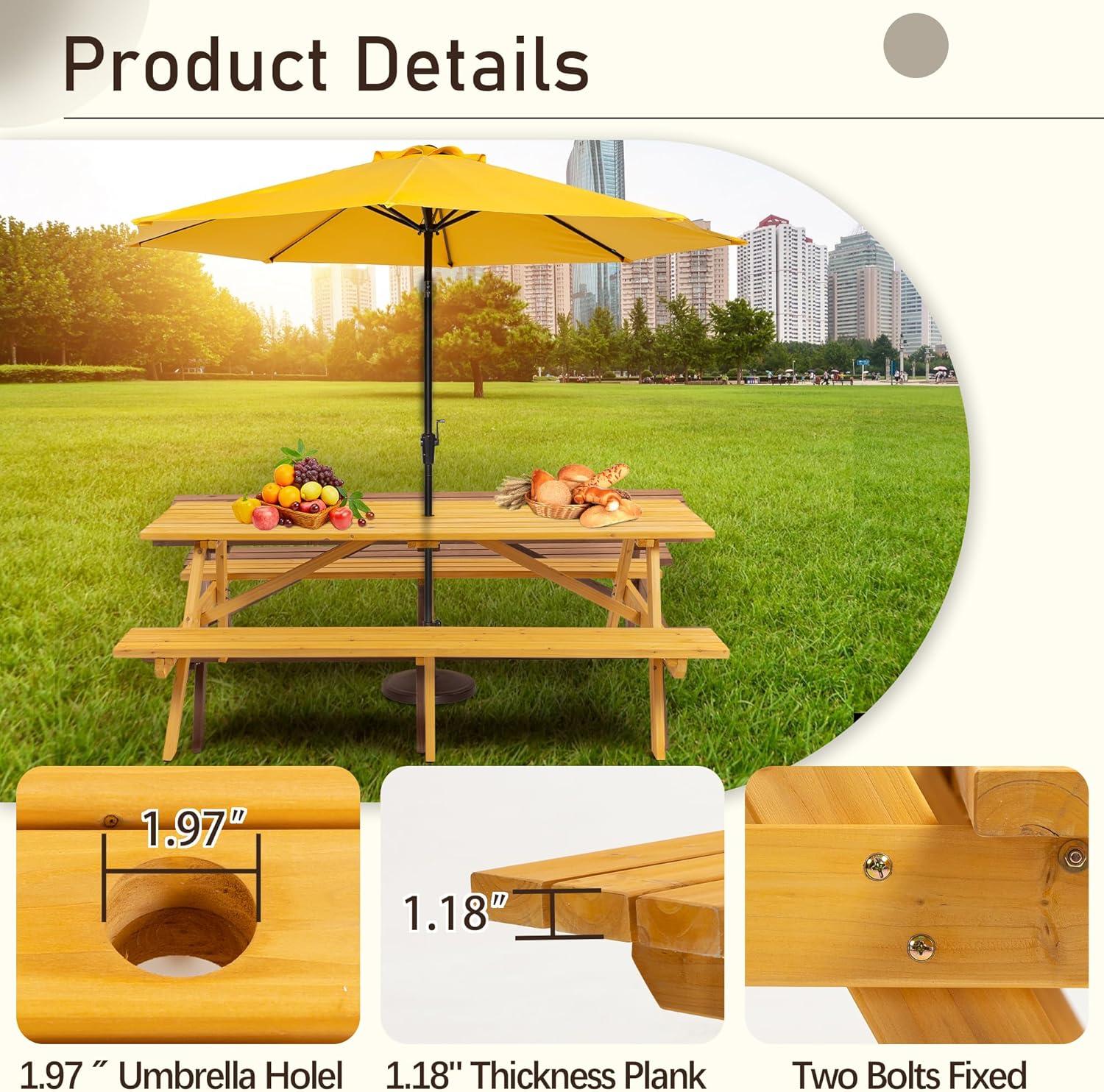 We recently had the chance to use the Picnic Table with Bench for 8 Person Outdoor Wooden Rectangle Table, and it quickly became a staple for our outdoor gatherings. Combining a classic wooden design with a sturdy, integrated bench setup, this table comfortably seats eight without crowding, making it ideal for everything from casual meals to lively social events. Crafted from durable fir wood and finished with weather-resistant protection,it stands up well to the elements,while the built-in umbrella hole adds a practical touch for sunny days.In this review, we’ll share our firsthand experience with its design, functionality, and how it fits into outdoor living spaces.