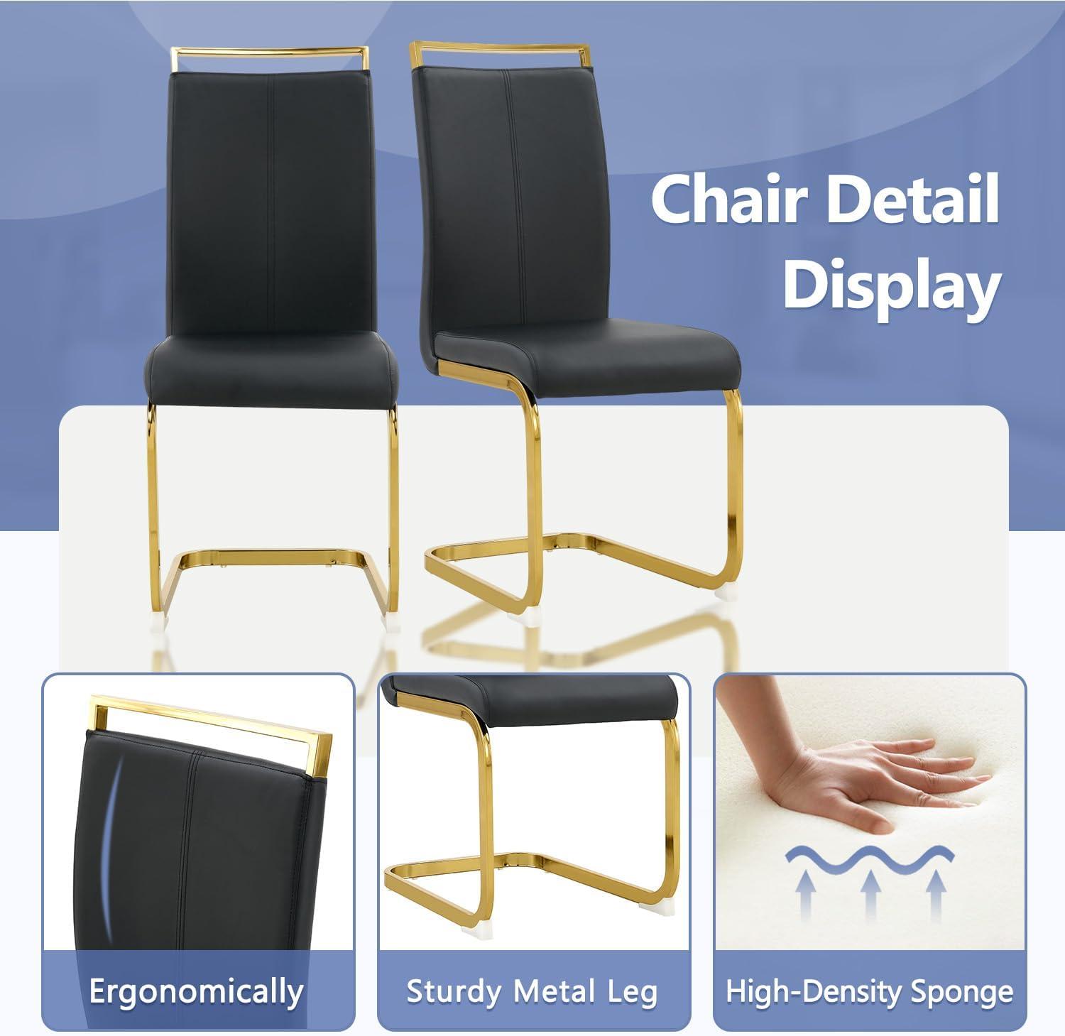 This dining set strikes a remarkable balance between style, comfort, and durability. The glossy faux marble tabletop instantly elevates the ambiance, giving any dining space a sophisticated and modern touch. The sleek edge lines and black finish complement a wide range of interior designs, making it an ideal choice for those who appreciate contemporary aesthetics without compromising practicality. The T-shaped stainless steel legs provide unwavering stability, allowing up to 500 lbs to be securely supported, which means every meal and gathering feels safe and solid.