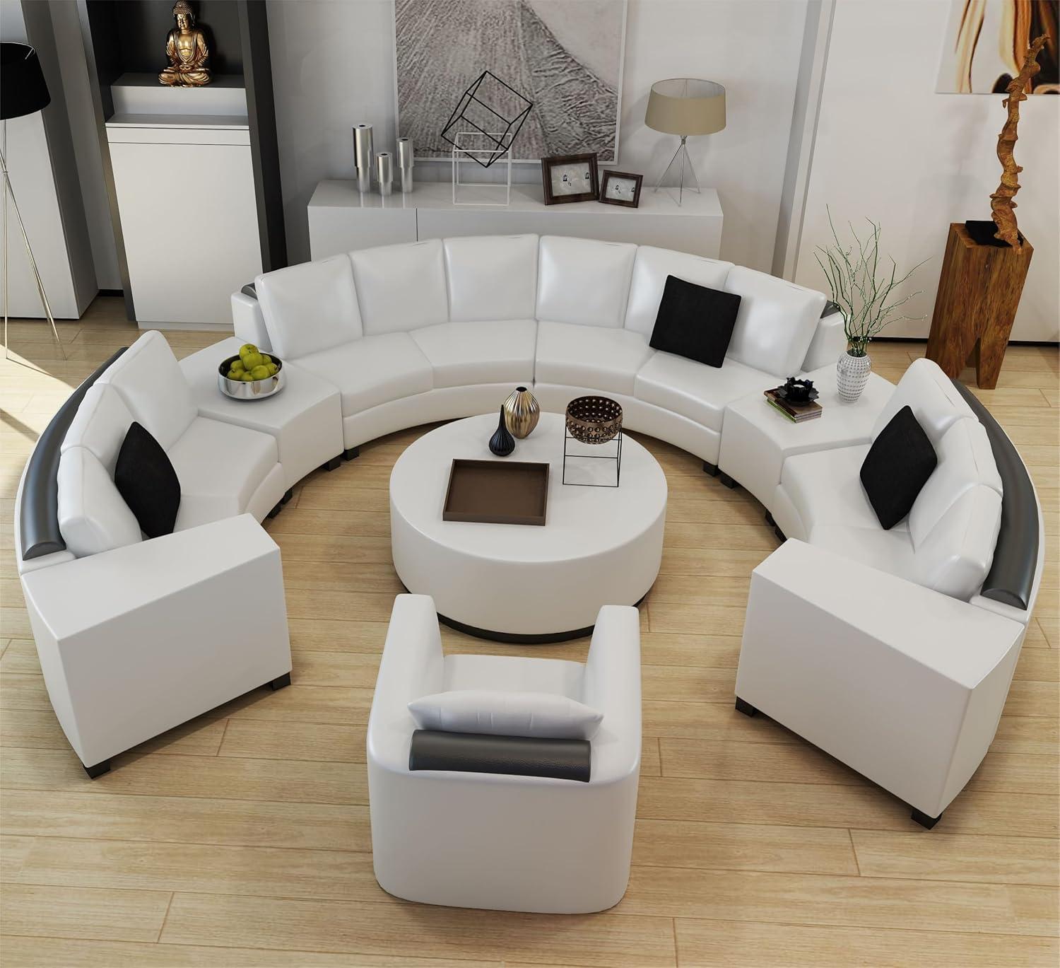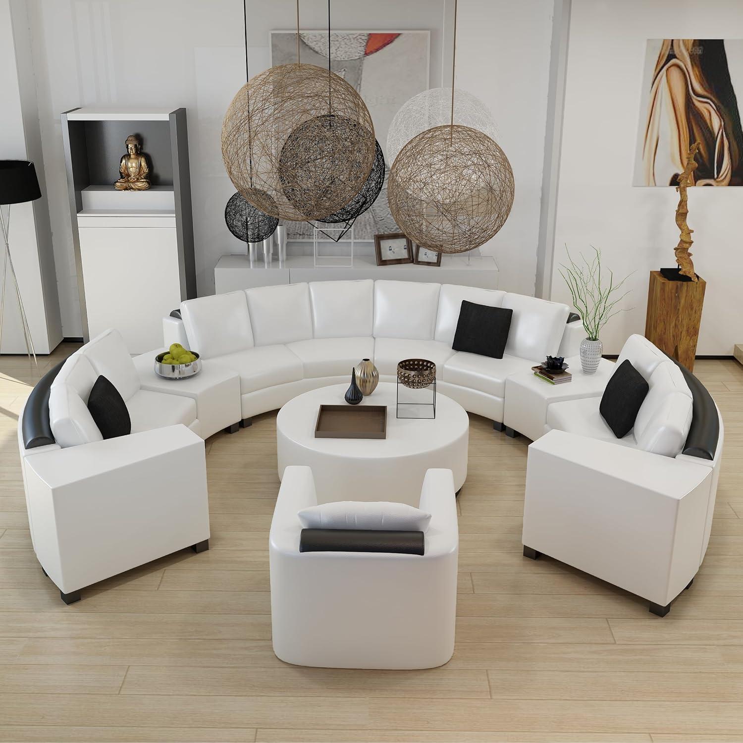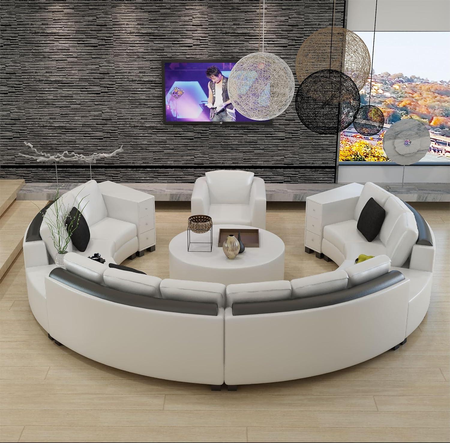 We truly appreciate the ingenuity behind this oversized, modular sectional designed to elevate any living space with its sleek, circular silhouette. the combination of microfiber PU leather upholstery in pristine white, rich with contrasting black trim and accent pillows, crafts an elegant and contemporary aesthetic bound to impress. Perfectly scalable, it comfortably seats between eight to twelve adults, encouraging engaging, 360° face-to-face conversations, which makes it ideal not only for homes but also for commercial environments like hotel lobbies or meeting rooms. The ergonomic curved back and plush cushioning grant extended lounging comfort, turning any space into a luxurious haven.
