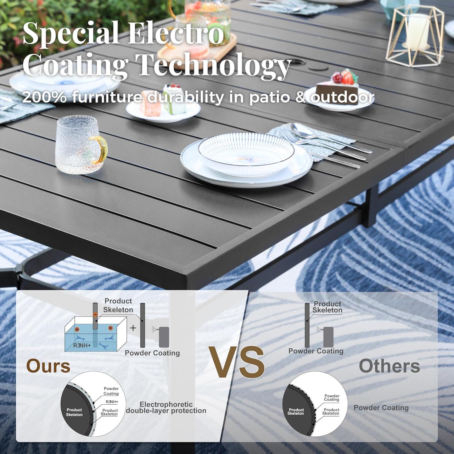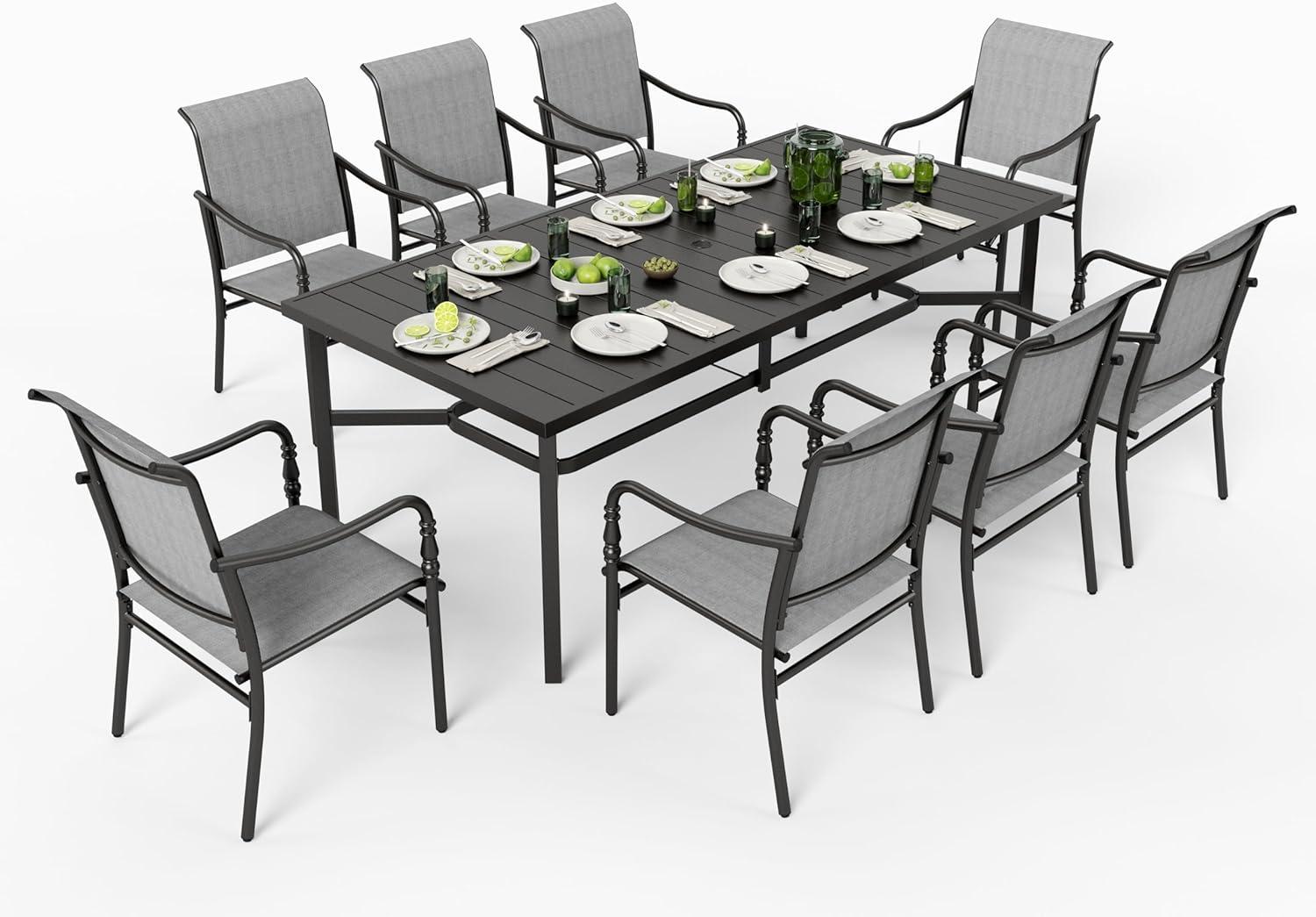 Gathering outdoors has never been more inviting since adding this spacious dining set to our backyard. The sleek grey finish complements various garden styles, creating a cohesive and modern ambiance. With seating for eight, it encourages more friends and family to join without feeling cramped, turning casual get-togethers into memorable celebrations. The Textilene chairs provide remarkable comfort and breathability, perfect for long conversations under the sun or stars. We especially appreciate the sturdy rectangular table that offers ample space for dishes,drinks,and decorations,making every meal feel thoughtfully arranged.