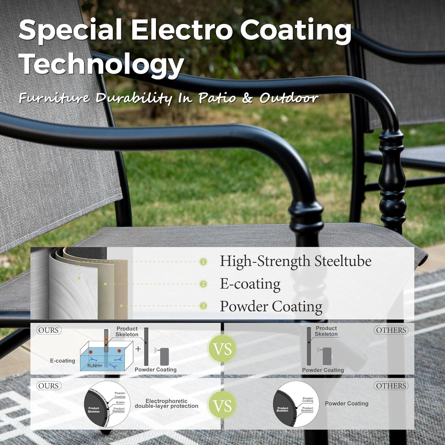 Our experience shows that this outdoor dining set stands up well to everyday weather challenges, especially when placed in shaded or covered areas. The Textilene fabric used for the chairs offers excellent resistance to moisture and UV rays, ensuring that the material won’t fade or weaken quickly under sun exposure. However, to maintain its best condition, avoiding direct contact with intense heat sources like grills or fire pits is crucial, as prolonged exposure could distort the frame or fabric. Additionally, regular cleaning and covering the set during heavy storms can significantly extend the lifespan of both the chairs and the tabletop.