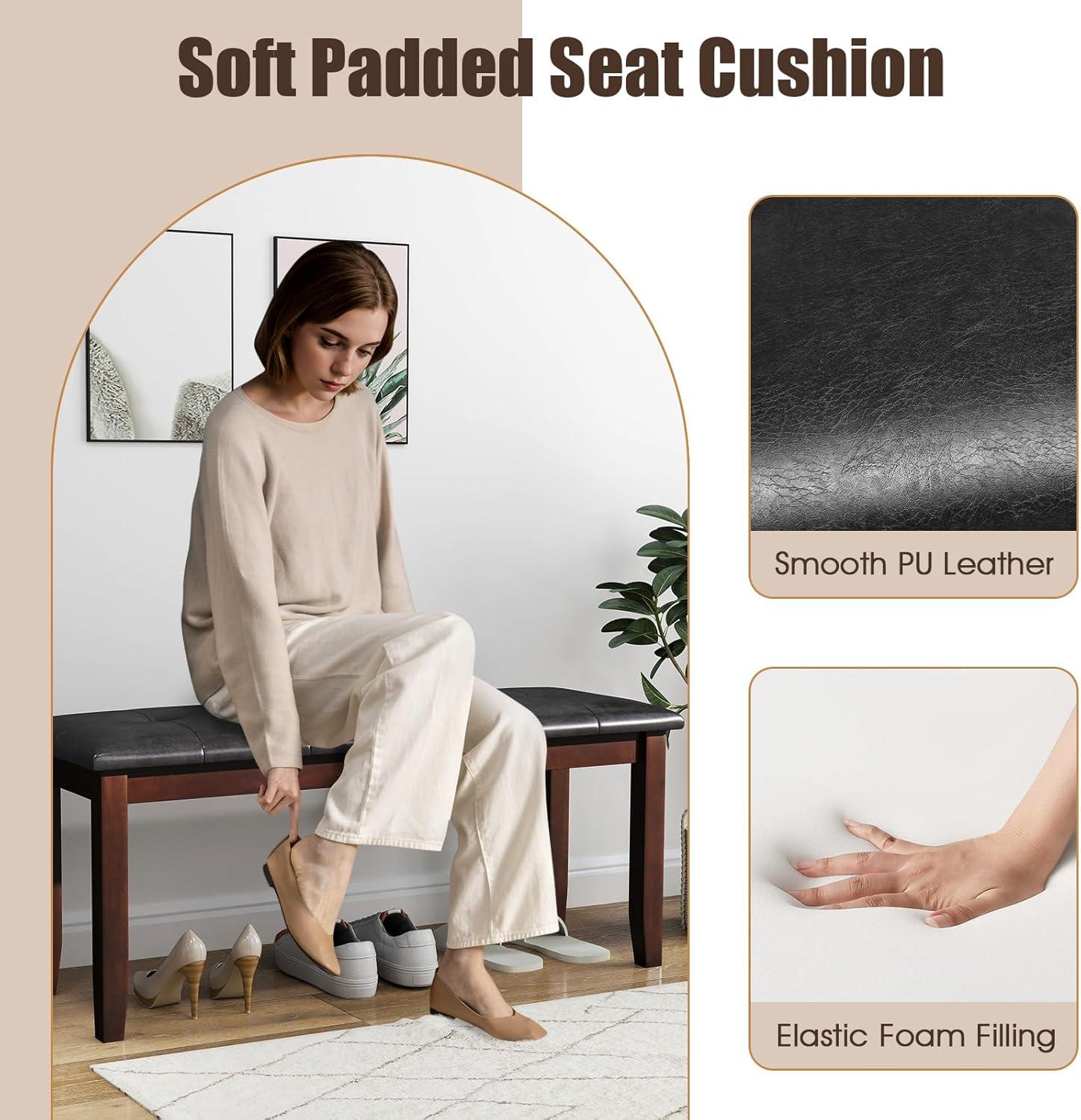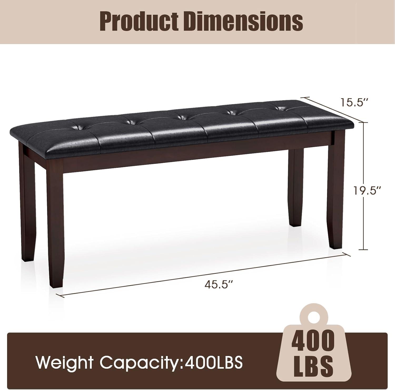 When we put this bench side-by-side with other dining and entryway benches we’ve tested, its combination of style, comfort, and durability really stands out. The button-tufted PU leather upholstery offers a sleek, modern look that compares favorably against many fabric-upholstered benches, which can be harder to clean and less resistant to spills. The plush foam padding ensures a cozy seating experience, surpassing many minimalist wooden benches in comfort without sacrificing sturdiness. Moreover, the solid rubber wood legs provide both an attractive natural finish and remarkable support, handling up to 400 lbs-a capacity that exceeds many similar benches in this price range.For households needing a versatile piece that adapts to dining rooms, bedrooms, or entryways, this option hits the mark perfectly.