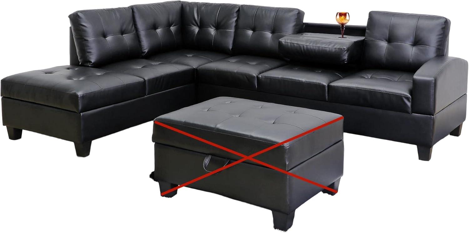 This sectional sofa effortlessly adapts to a variety of living room aesthetics thanks to its sleek black faux leather finish and modern L-shaped design. Whether your space leans toward minimalist, contemporary, or even industrial styles, its clean tufted detailing and subtle accents on the armrest add just the right touch of sophistication without overwhelming the room. The reversible chaise makes it versatile for different layouts, allowing us to optimize our space while maintaining visual harmony.