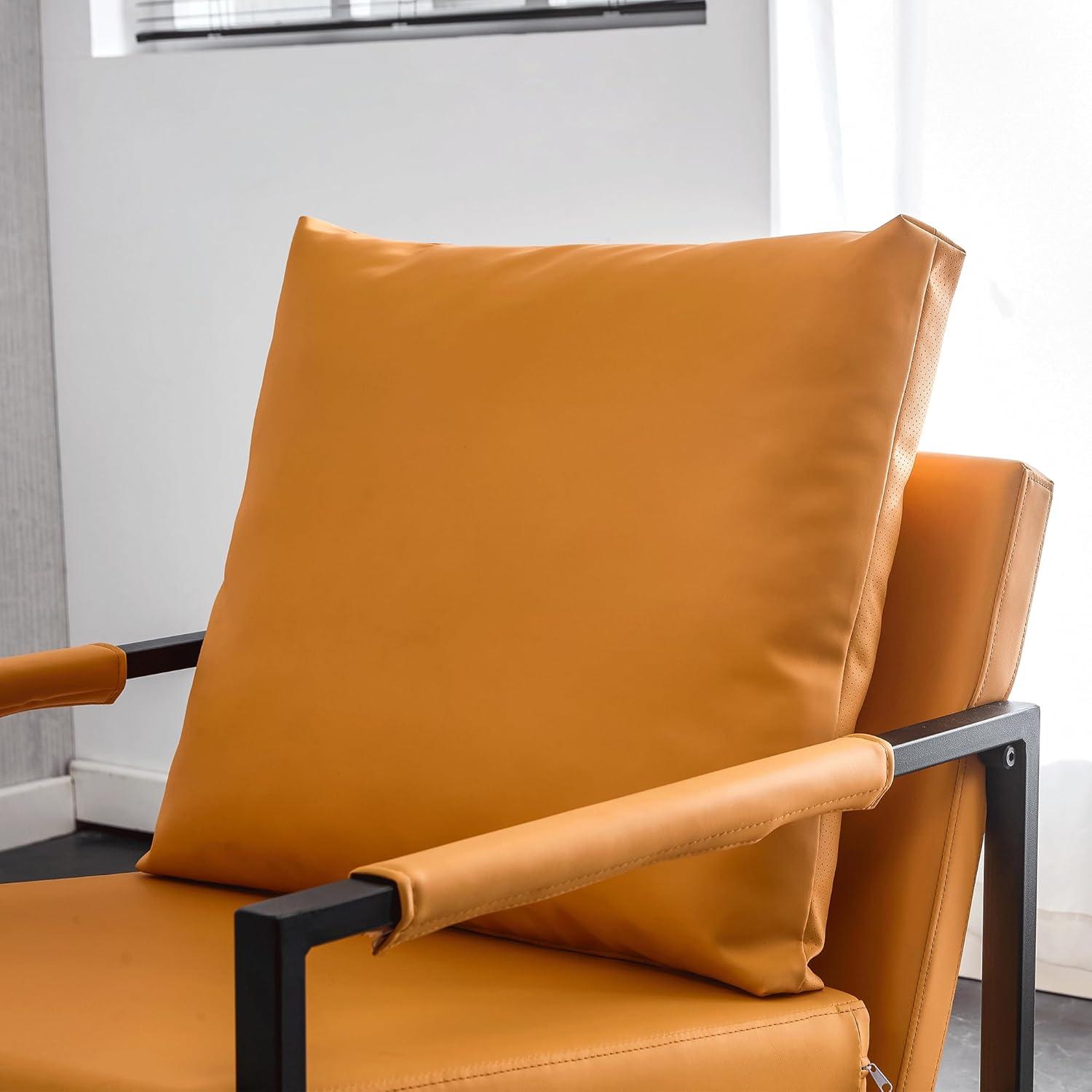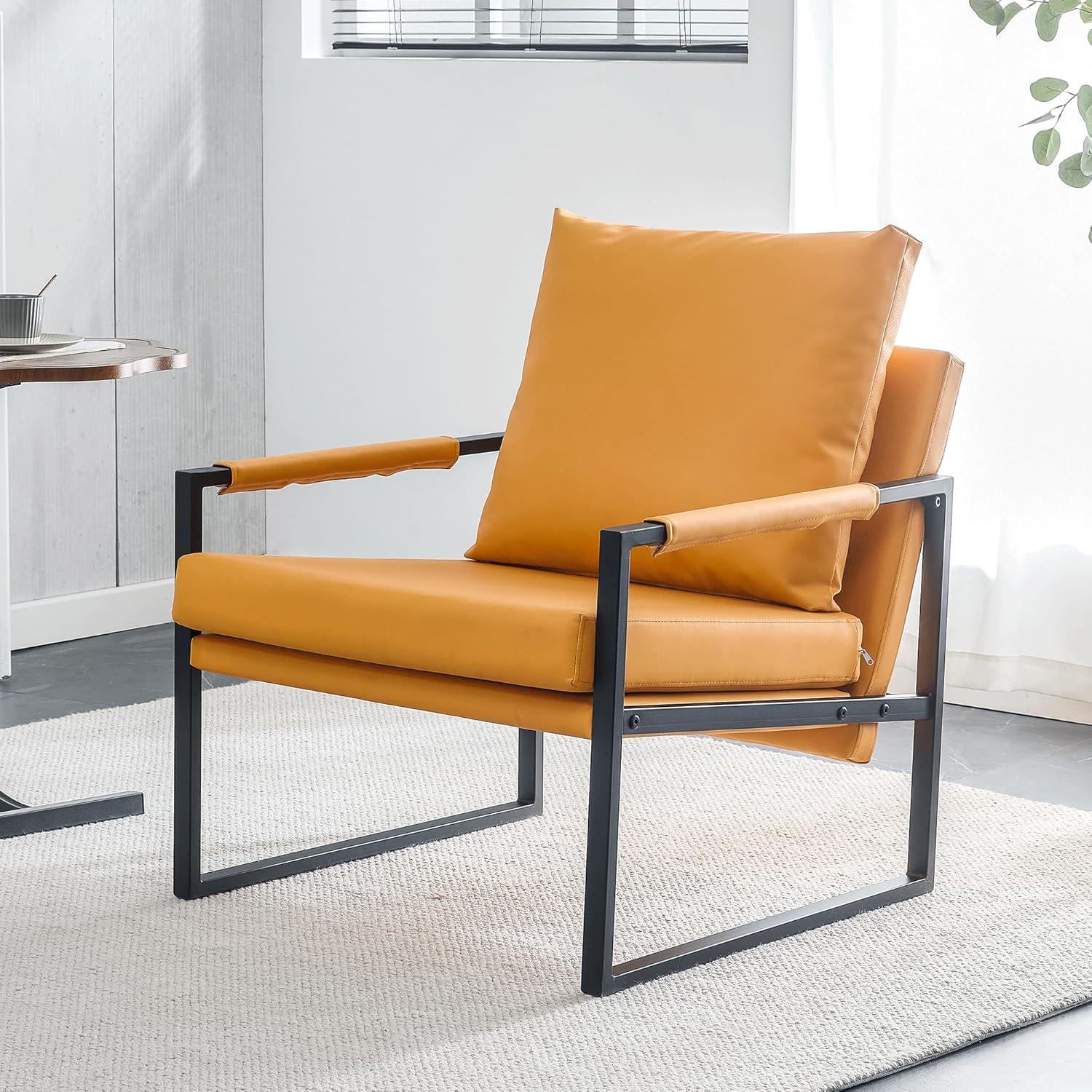 Over time, the Mid-Century Chair Faux Leather Leisure Chair Reading Chair with Metal Frame settles into the corner where light catches the grain of the rug, chosen less for show and more for how the room is used. You notice the faux leather soften in daily routines, small creases forming where elbows rest and the metal frame taking on the quiet weight of brief pauses between tasks. Surface marks and the gentle darkening from hands are part of its everyday presence, woven into regular household rhythms rather than standing out. It stays.