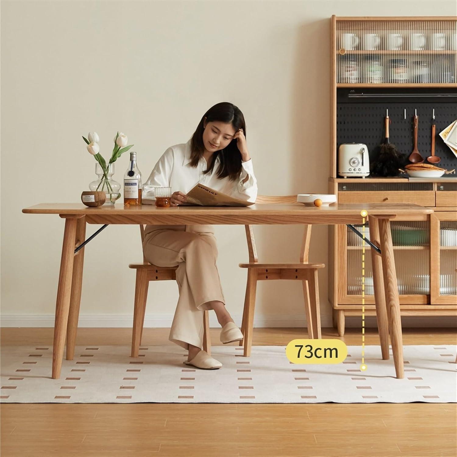 After spending considerable time with this solid oak dining table, we can confidently say it strikes a perfect balance between form and function. Its natural wood grain and clean, Nordic-inspired lines effortlessly elevate the atmosphere of any room, adding a warm, inviting touch without overwhelming your existing décor. The sturdy construction provides robust support, making it suitable not only for daily family meals but also for larger gatherings, work sessions, or even meetings. The expansive tabletop offers ample space to comfortably fit multiple place settings or spread out work materials, which is ideal for multi-purpose use.