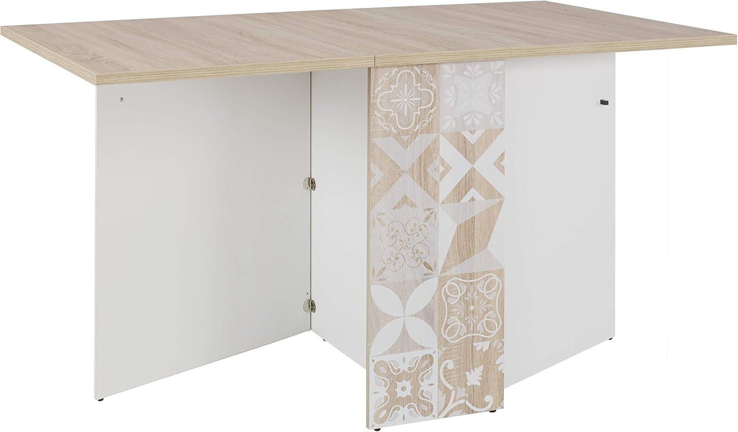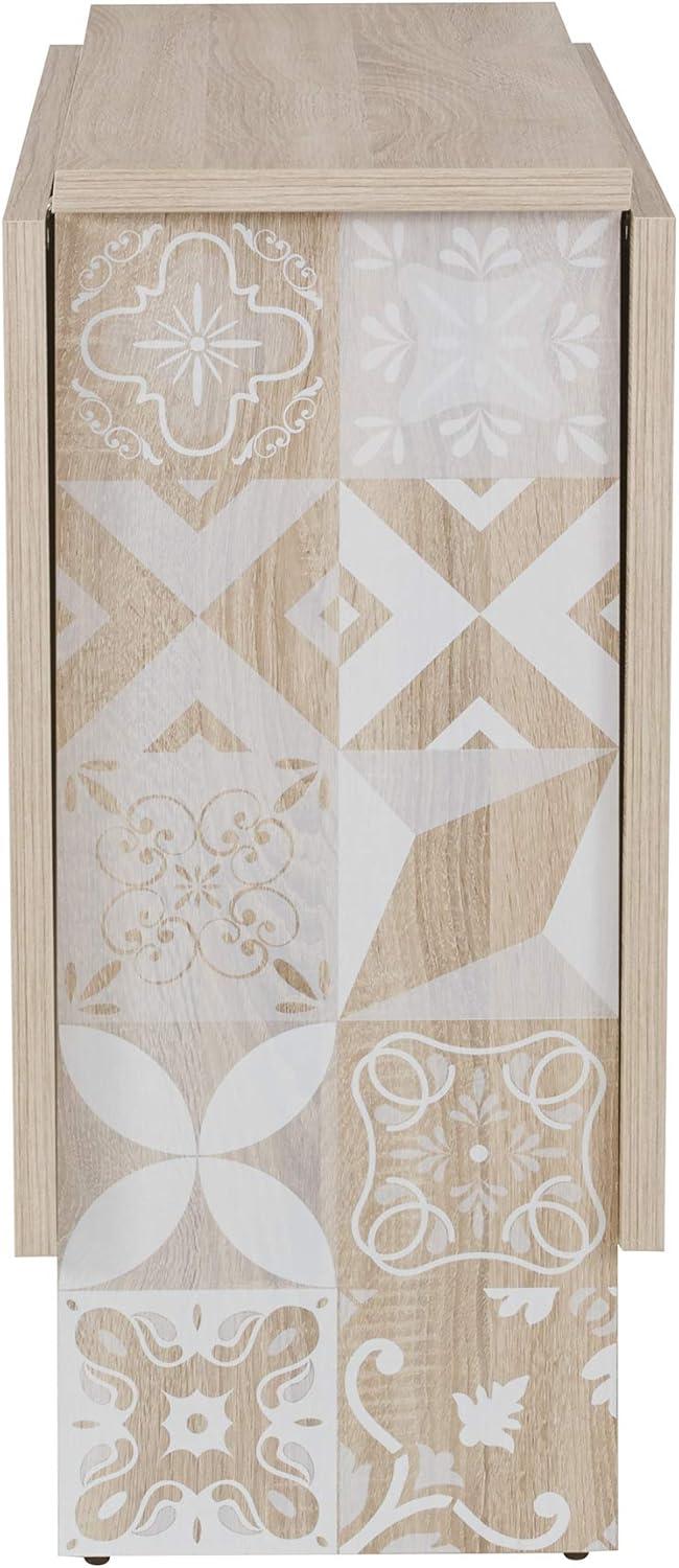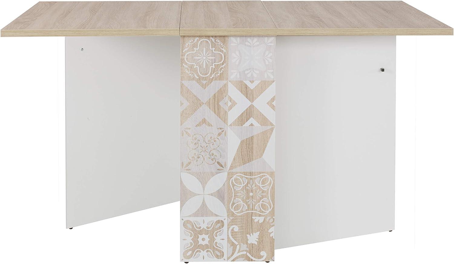 One of the first things that impressed us was the seamless blend of form and function in this piece. its two-tone finish, combining a warm Haven light Oak woodgrain with crisp solid White, creates a soothing neutral palette that complements a multitude of décor styles-from bright and bold to soft pastels.The side panels showcase a unique stamp block pattern with artful patches of Light Gray, Oak, and White, adding subtle character that remains visually appealing even when folded.This thoughtful detail elevates the table beyond mere practicality, making it an eye-catching feature in any room or hallway.