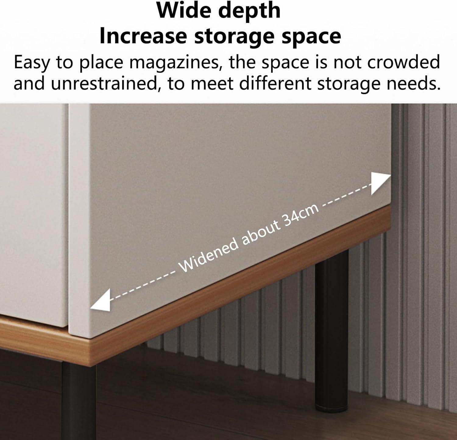 Complementing its storage features, the table’s surface offers generous space for items you use daily, such as a warm lamp or a glass of water. Crafted with durable plate material and supported by a strong metal frame, this combination ensures stability even when the storage is fully utilized.The elegant white finish combined with the subtle hints of wood tone also makes this piece an adaptable addition to various interior styles. Below is a quick overview of its storage facets: