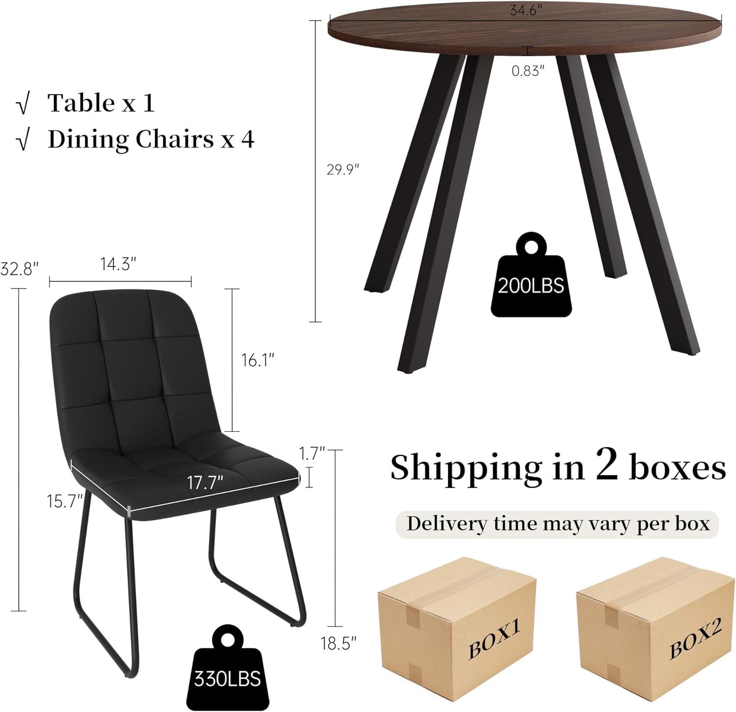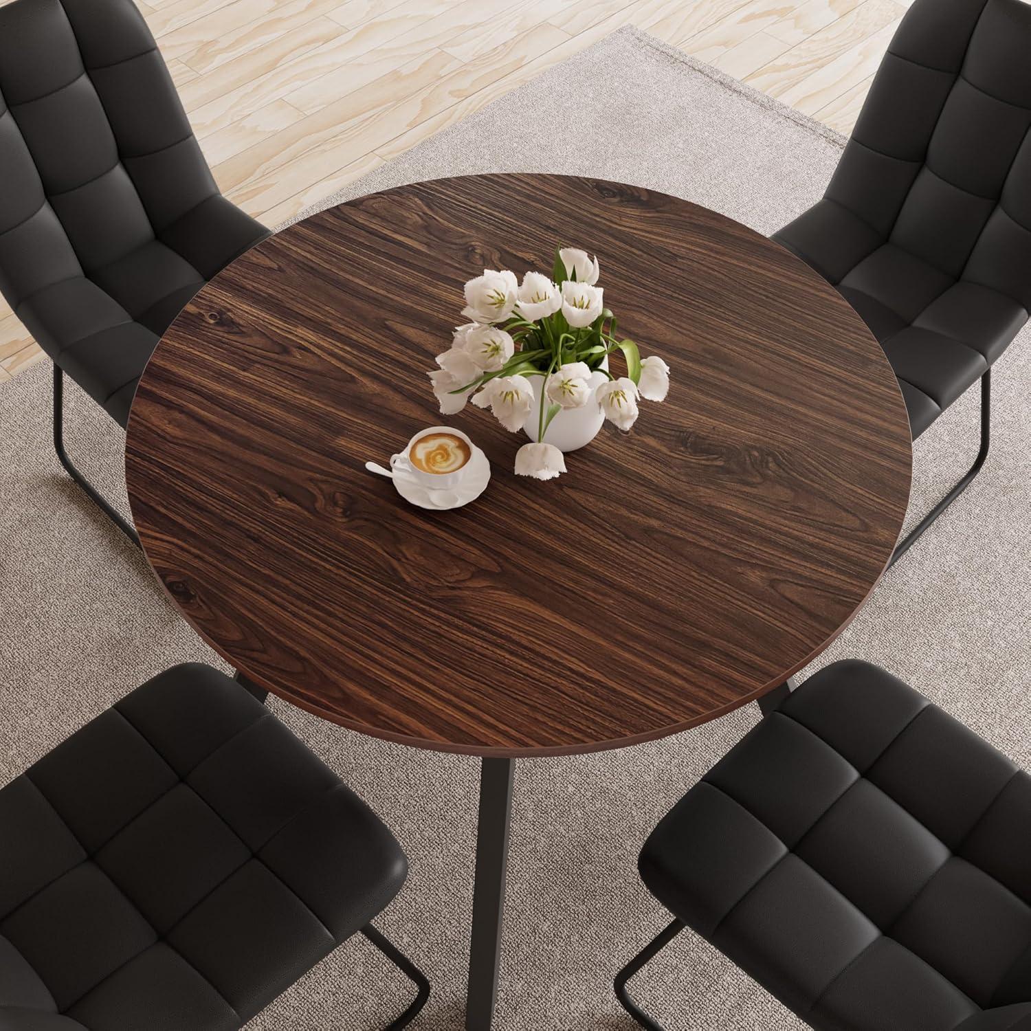 We appreciate the thoughtful design that perfectly suits compact living spaces. The round table, crafted from thick MDF with a dark walnut textured finish, offers an inviting centerpiece that’s both stylish and practical. Its sturdy carbon steel legs come equipped with non-slip rubber pads, delivering excellent stability on various floor types. Complementing the table, the four U-shaped black chairs feature carbon steel frames that promise durability. Their ergonomic curved backs and high-elastic sponge seats wrapped in PU leather add a level of comfort ideal for everyday use. Assembly couldn’t be simpler; attaching just four legs to the table and enjoying chairs with integrated backrest and seat cushions means minimal effort for a fully functional dining area.