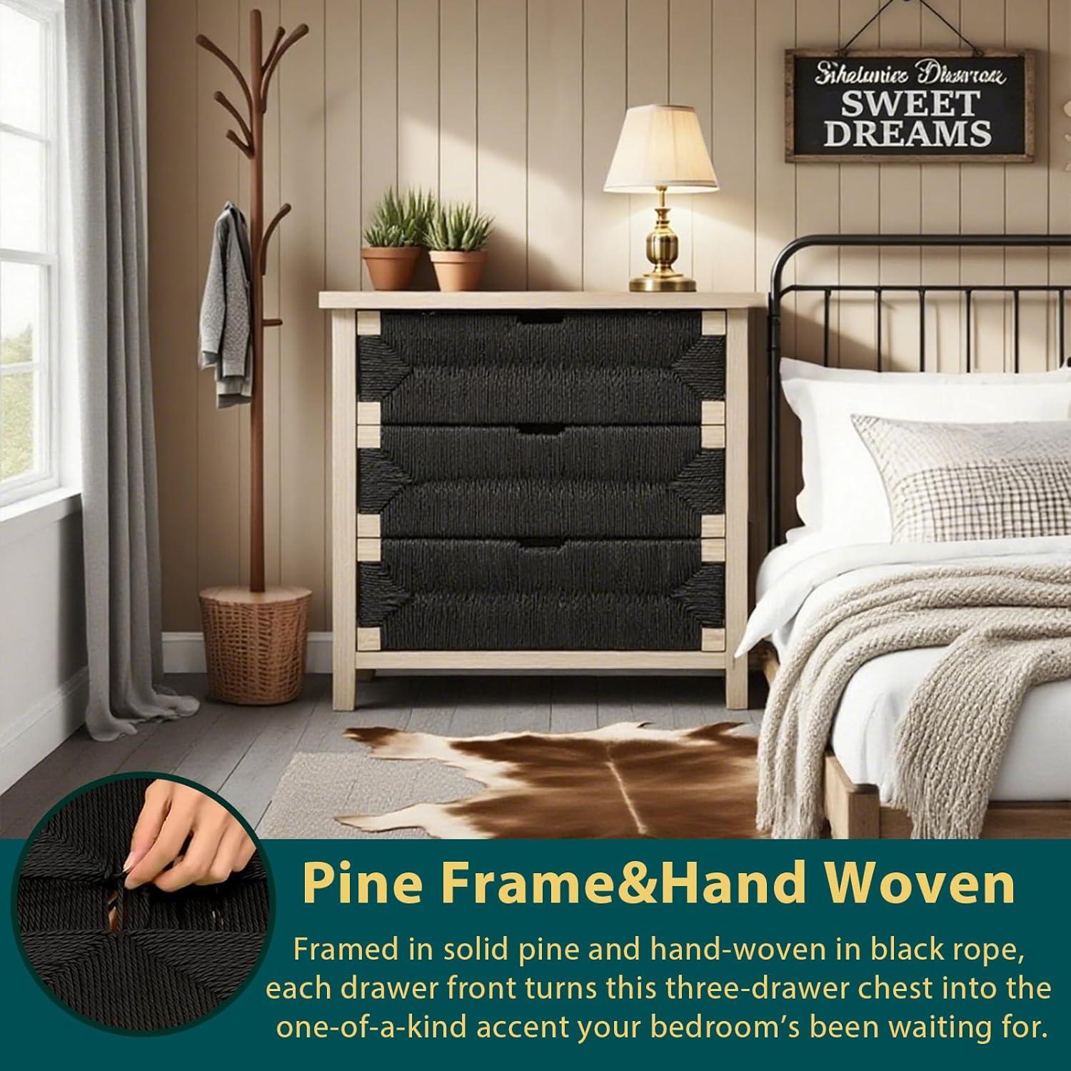 How We Found the Black Handwoven 3-Drawer Nightstand Sturdy and Stylish