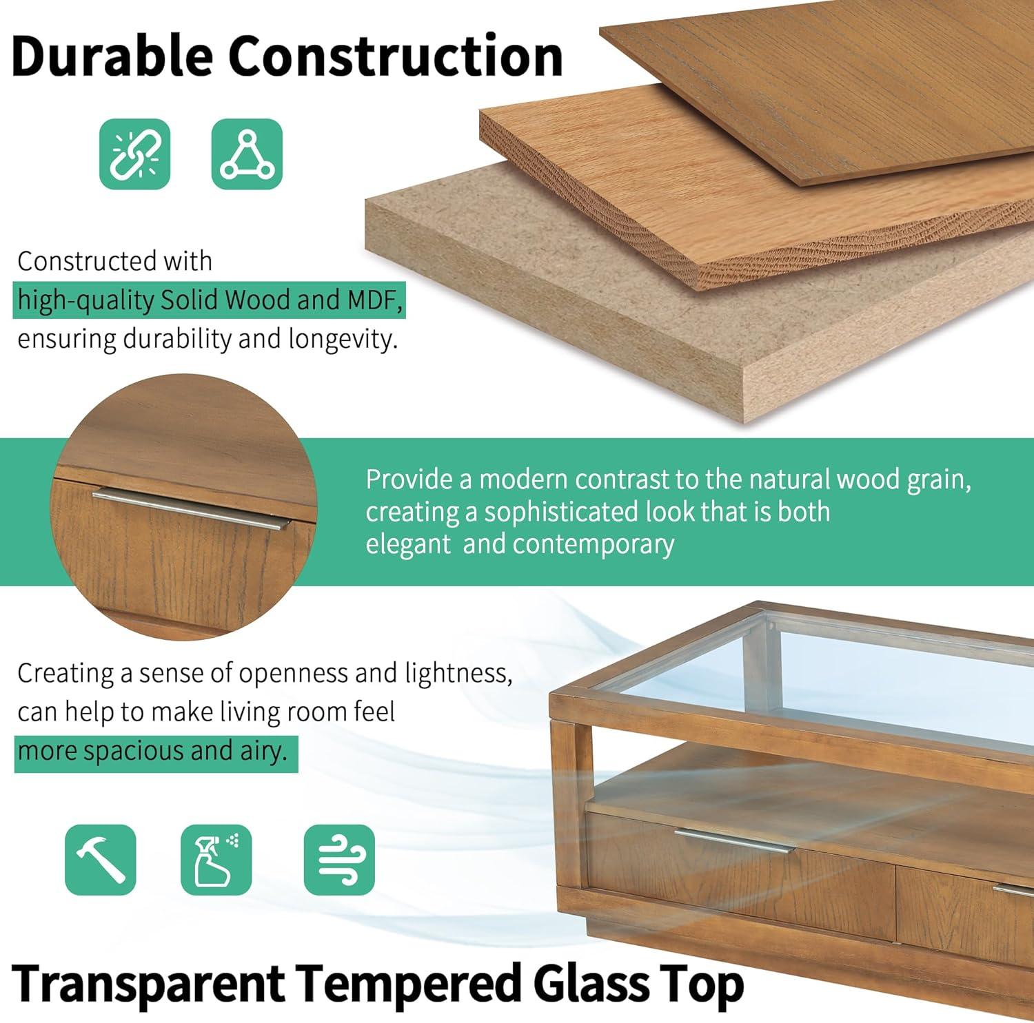 Over the⁢ months we’ve had this table in our living room, its robust construction from solid wood and MDF has truly ⁤stood the test of ‍time. The blend⁣ of ⁢materials not only gives it a sturdy feel⁤ but ‍also resists the everyday wear and tear we often face⁢ with ‍coffee tables. We notably appreciate how​ the transparent tempered glass top ‌adds an extra layer of scratch resistance, helping maintain the surface’s pristine look with ‌minimal effort. Cleaning is straightforward-often just a gentle wipe-down with a damp cloth suffices. The drawers‍ and open ⁣shelf have remained ‍smooth and functional, showing no signs of weakening ‍or warping despite regular use.