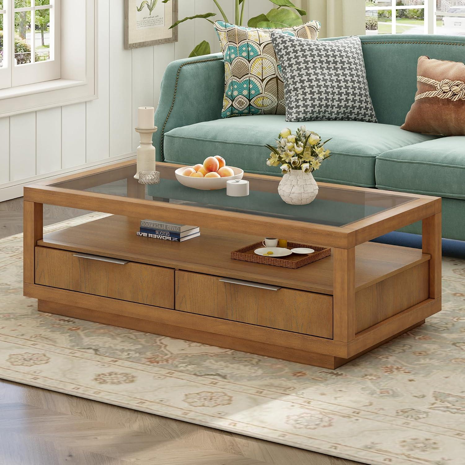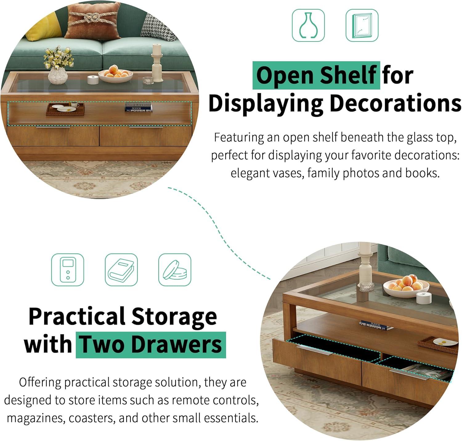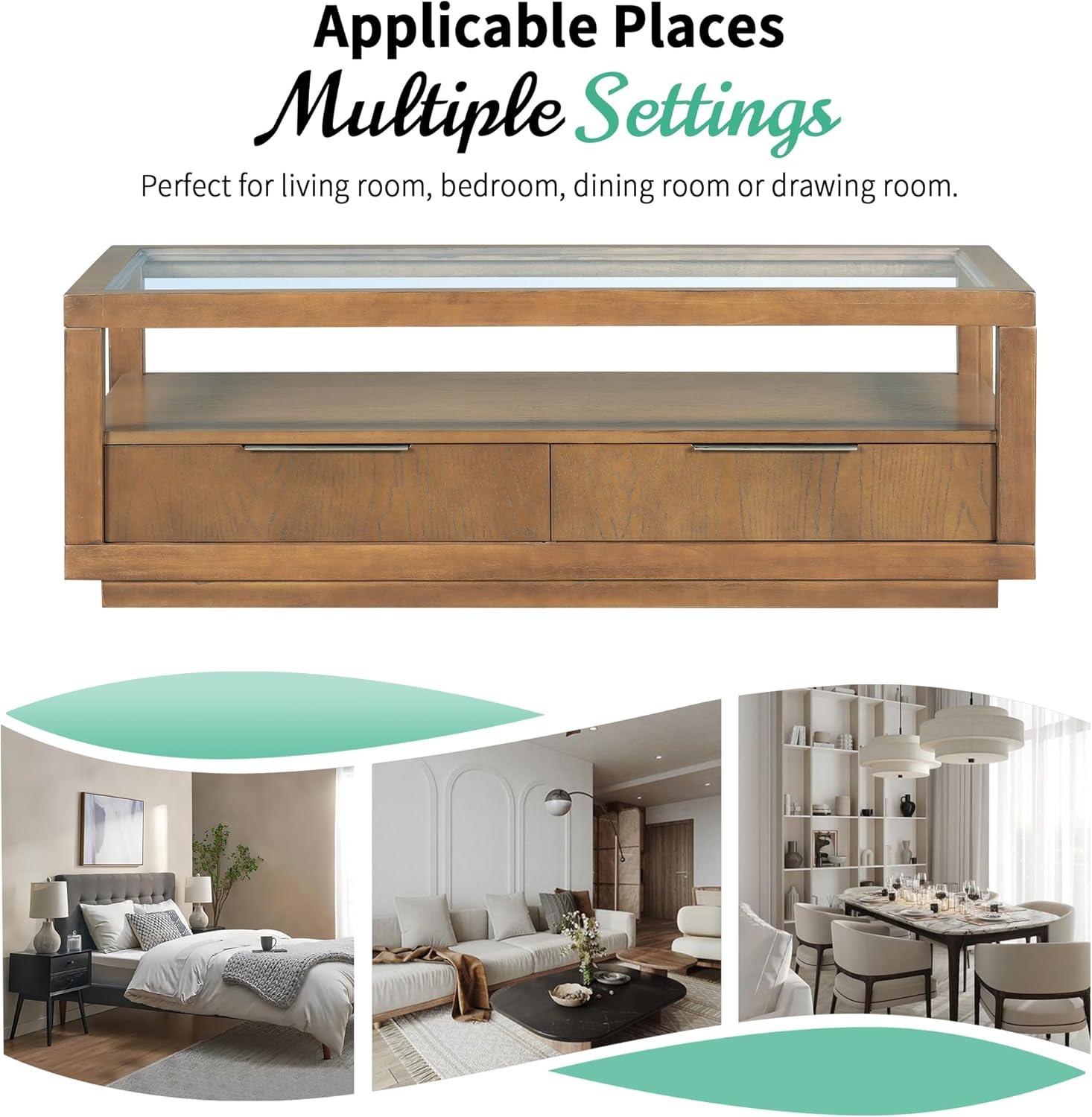 the transparent tempered glass⁢ top ⁤plays a pivotal role in elevating the overall visual appeal of the ‌coffee table. Its sleek, glossy surface introduces⁢ a modern, refined element that effortlessly blends with the natural warmth of the wood. Because the glass‌ is clear, it creates ⁣an open,⁢ airy feeling that prevents the table ​from looking bulky or heavy in⁤ the living space. This subtle ​clarity beautifully‌ showcases the open storage shelf​ underneath,⁣ allowing us to display decorative items or essentials ⁢without clutter, making the entire ‌piece feel light and inviting.