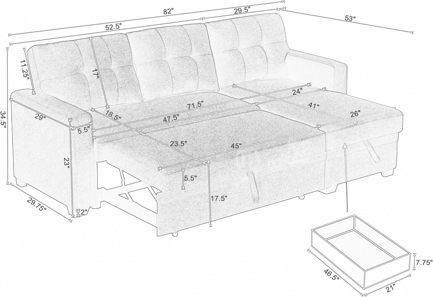 This sectional sofa strikes a compelling balance between style, comfort, and functionality. Crafted with a solid wood frame capable of supporting up to 600 pounds, it assures durability and stability. The high-quality Dutch linen upholstery provides a soft yet resilient surface, inviting you to relax while adding an elegant touch to any room. The reversible chaise lounge with built-in storage is a clever design feature that adapts to your space and storage needs, making it perfect for smaller living rooms or apartments where maximizing utility without sacrificing aesthetics is key. plus, the easy pull-out twin-size bed transforms this sectional into a restful guest solution in moments.