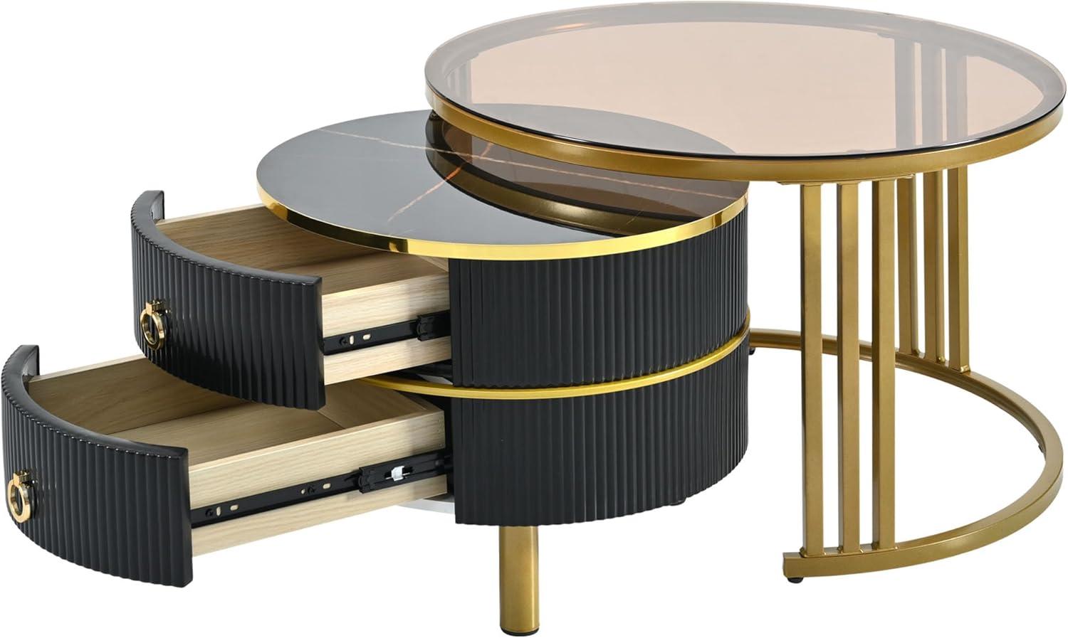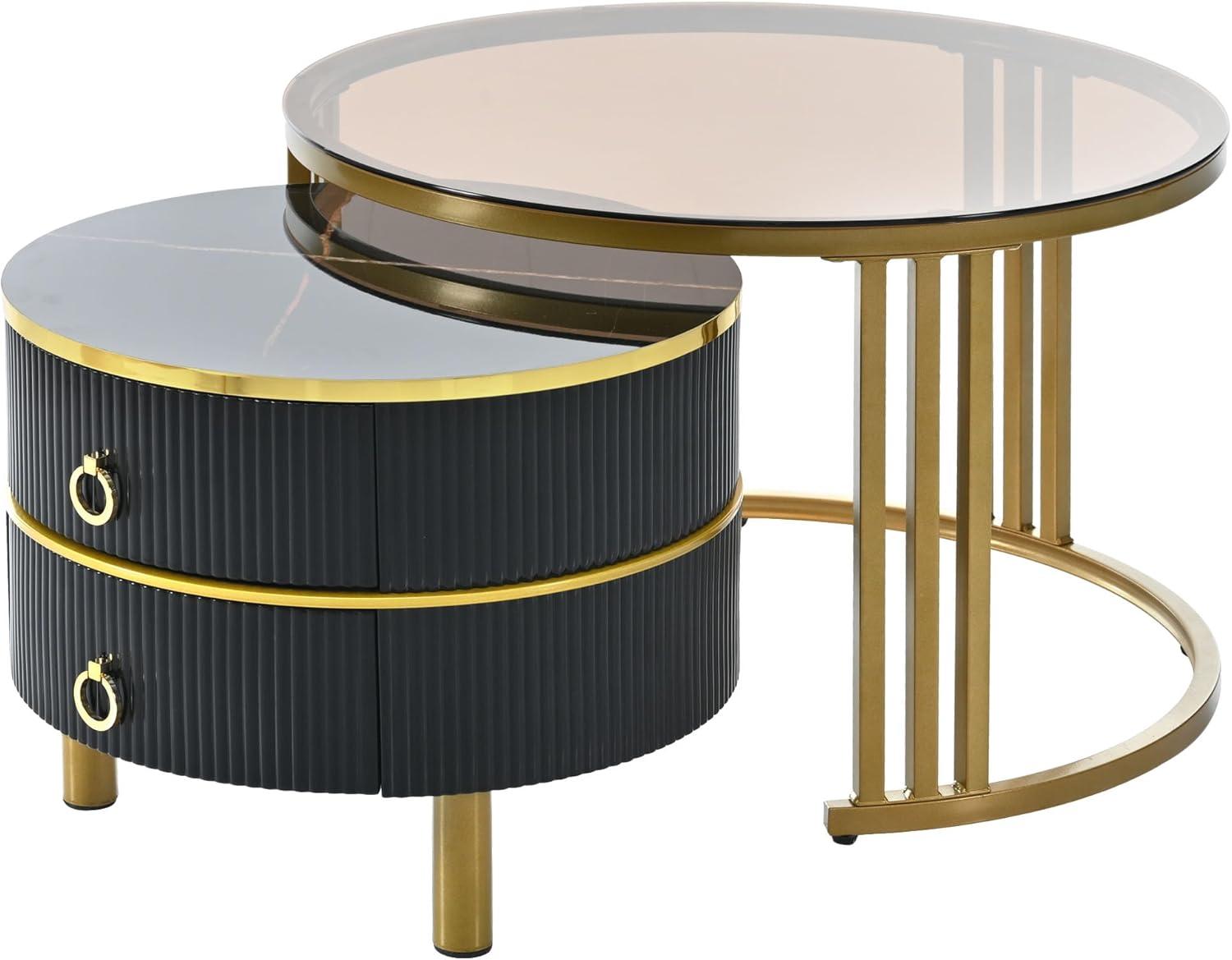 The inclusion of two storage drawers in this nesting table set smartly elevates its practical appeal, especially for those of us looking to maintain a clutter-free living area. These drawers are spacious enough to tuck away everyday essentials like remote controls, magazines, coasters, and other small items that tend to crowd coffee tables. Their smooth glide mechanism makes accessing stored items effortless, while their design perfectly complements the overall modern aesthetic with golden handles adding a subtle touch of elegance.