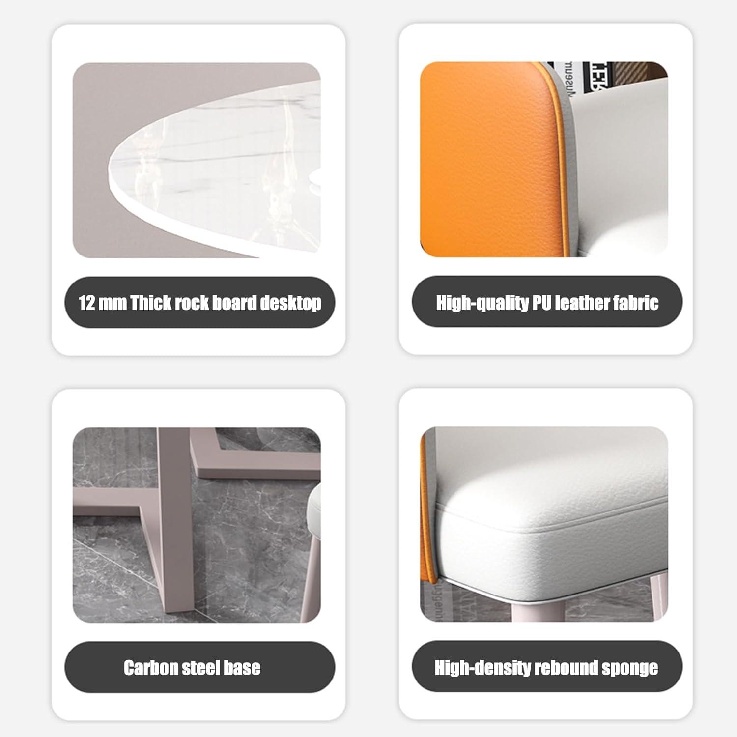 | Material | Stone board (tabletop), Carbon steel (frame), PU leather (chairs) |